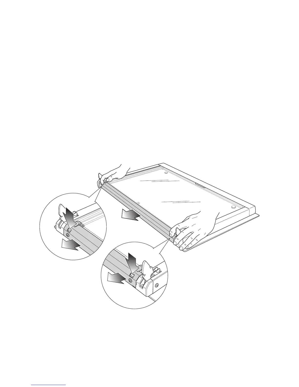 2. Press down on both tabs to release the glass retainer.