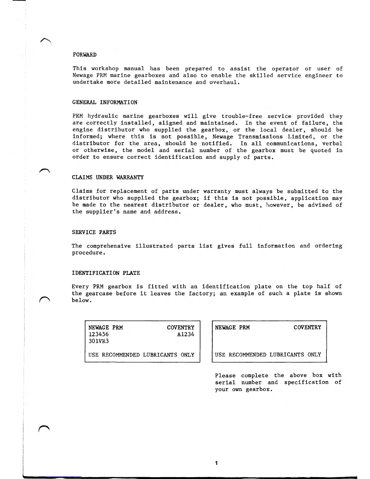 Newage PRM 301 - FORWARD; GENERAL INFORMATION; CLAIMS UNDER WARRANTY; SERVICE PARTS
