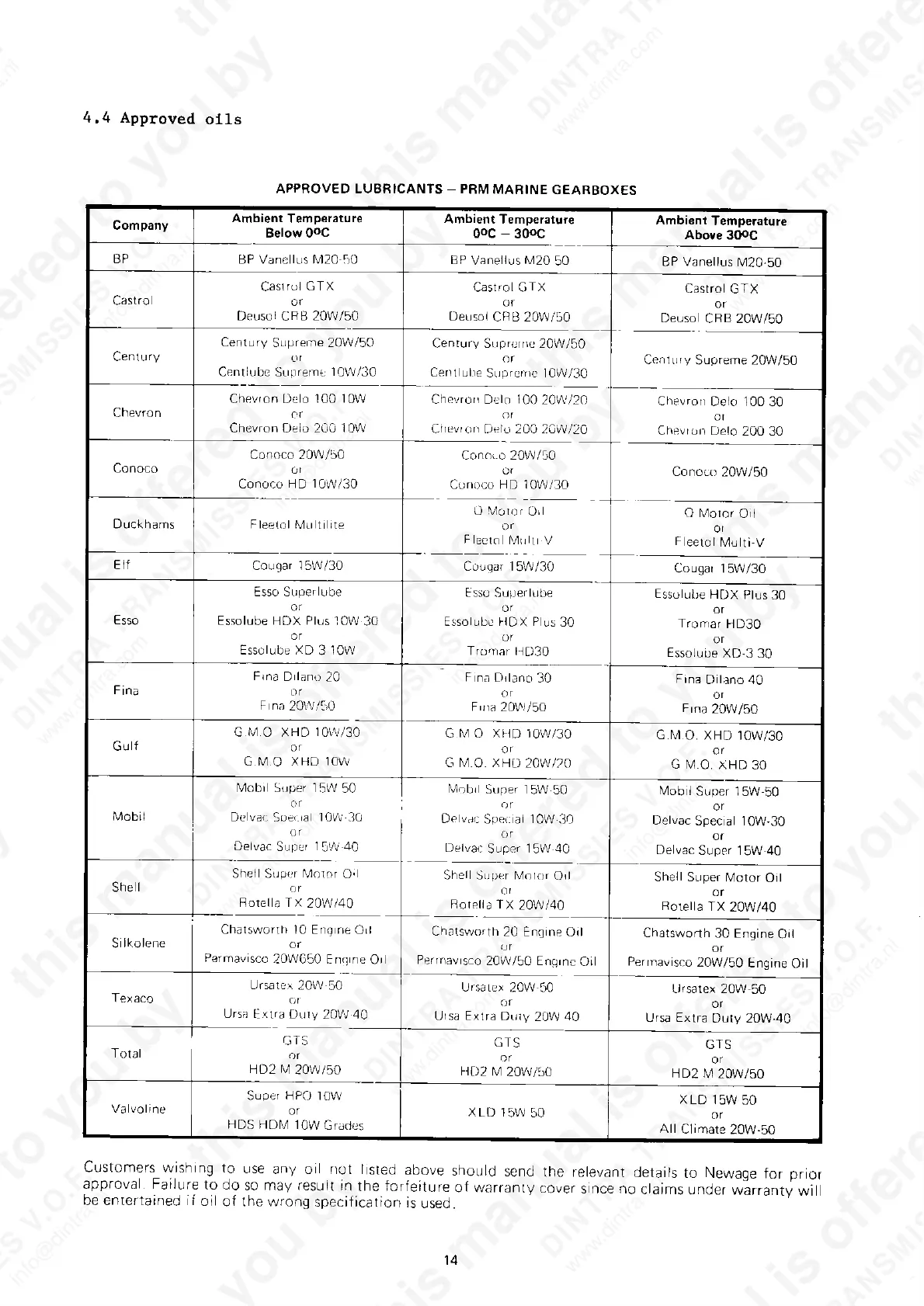 Newage PRM 302D - Approved Oils