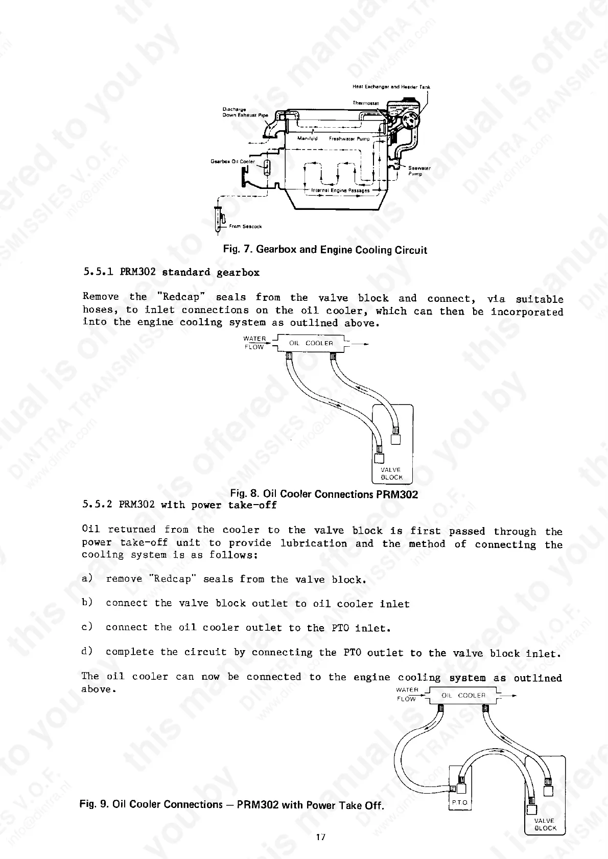 Newage PRM 302D - PRM302 Standard Gearbox; PRM302 with Power Take-Off; Gearbox and Engine Cooling Circuit; Oil Cooler Connections PRM302