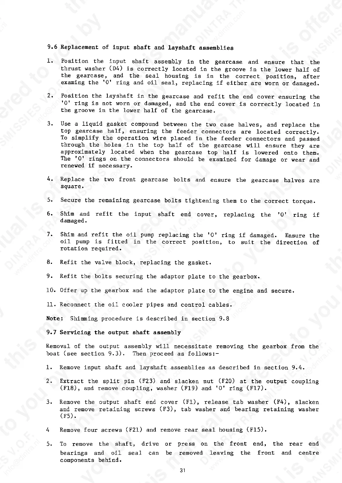 Page 33 (Replacement of Input Shaft and Layshaft Assemblies)