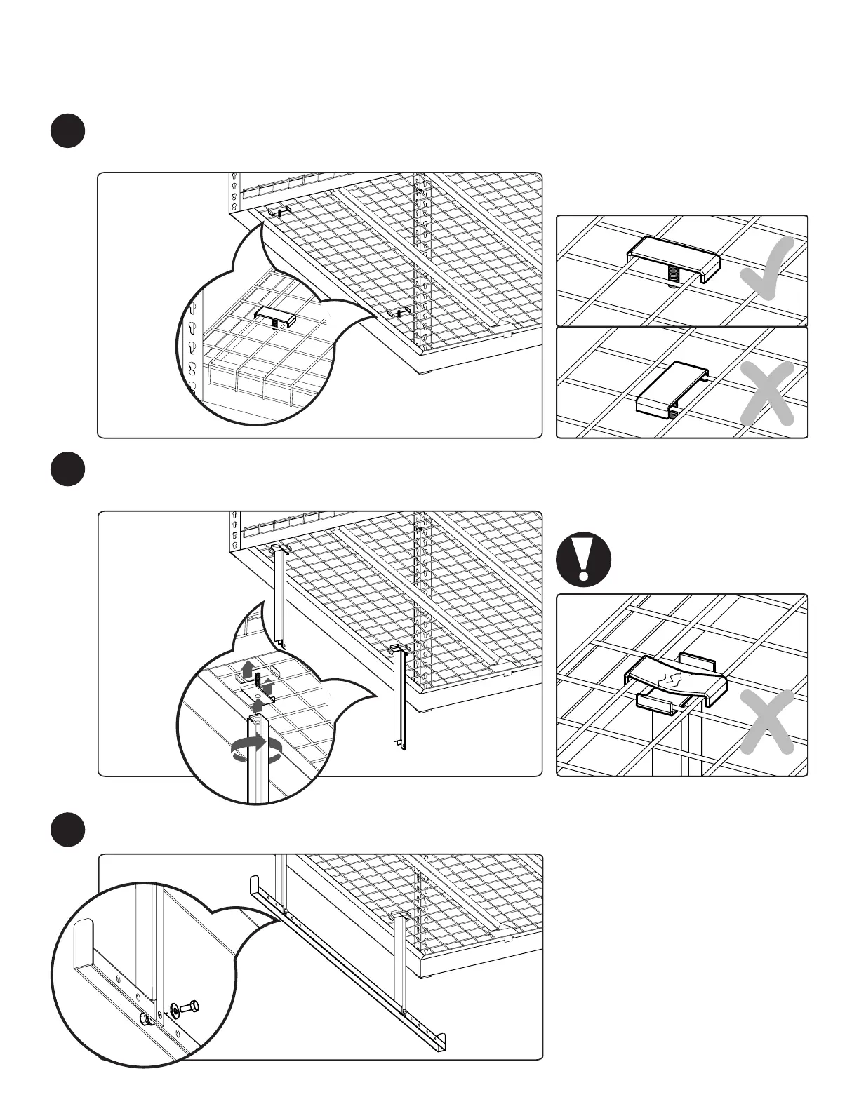 Fixer en bas, les clips de la grille et la barre de chute C-canaux sur la face inférieure de la grille
