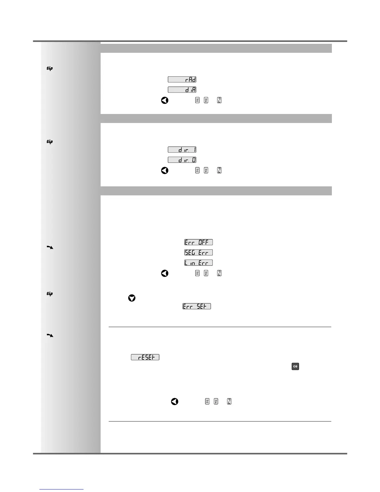 • Press the Select Key next to the , or to cycle between the two settings for each axis.