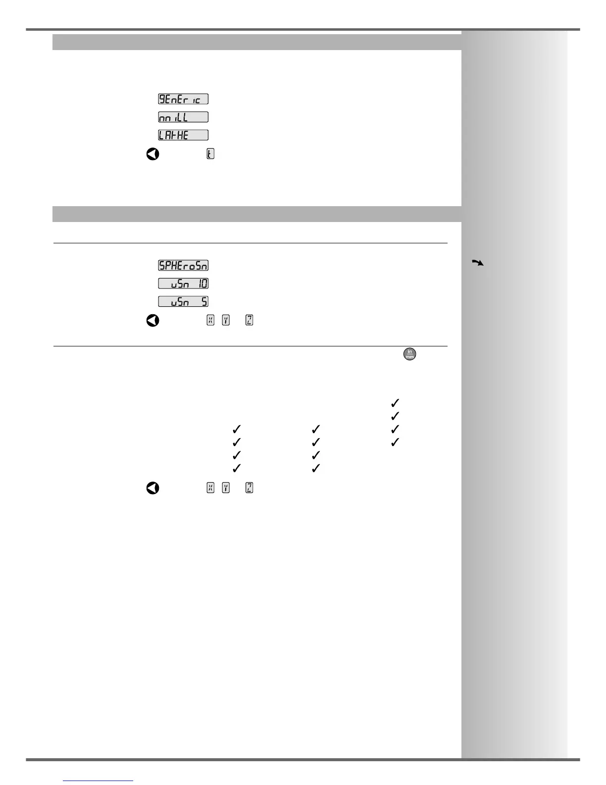 • Press the Select Key next to the , or to cycle between the four available settings for