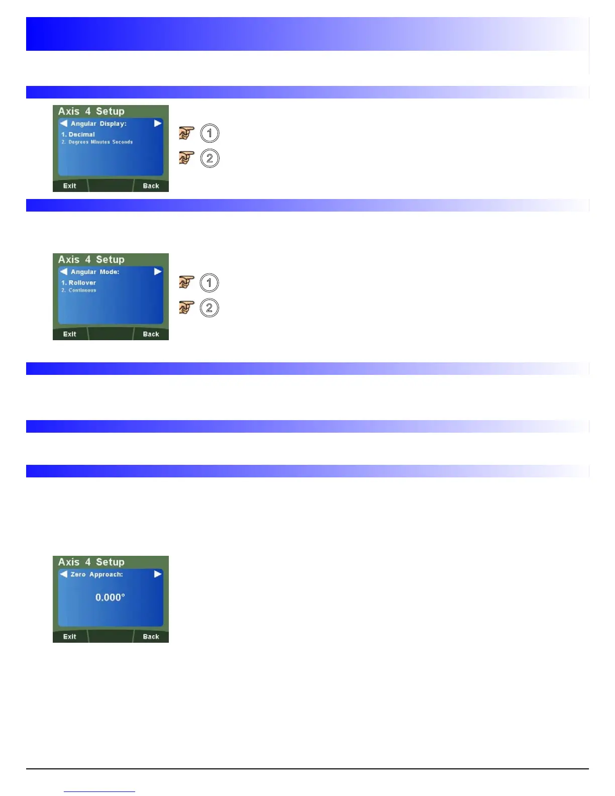 This function allows the selection of rollover at 360° back to zero or to provide a continuous