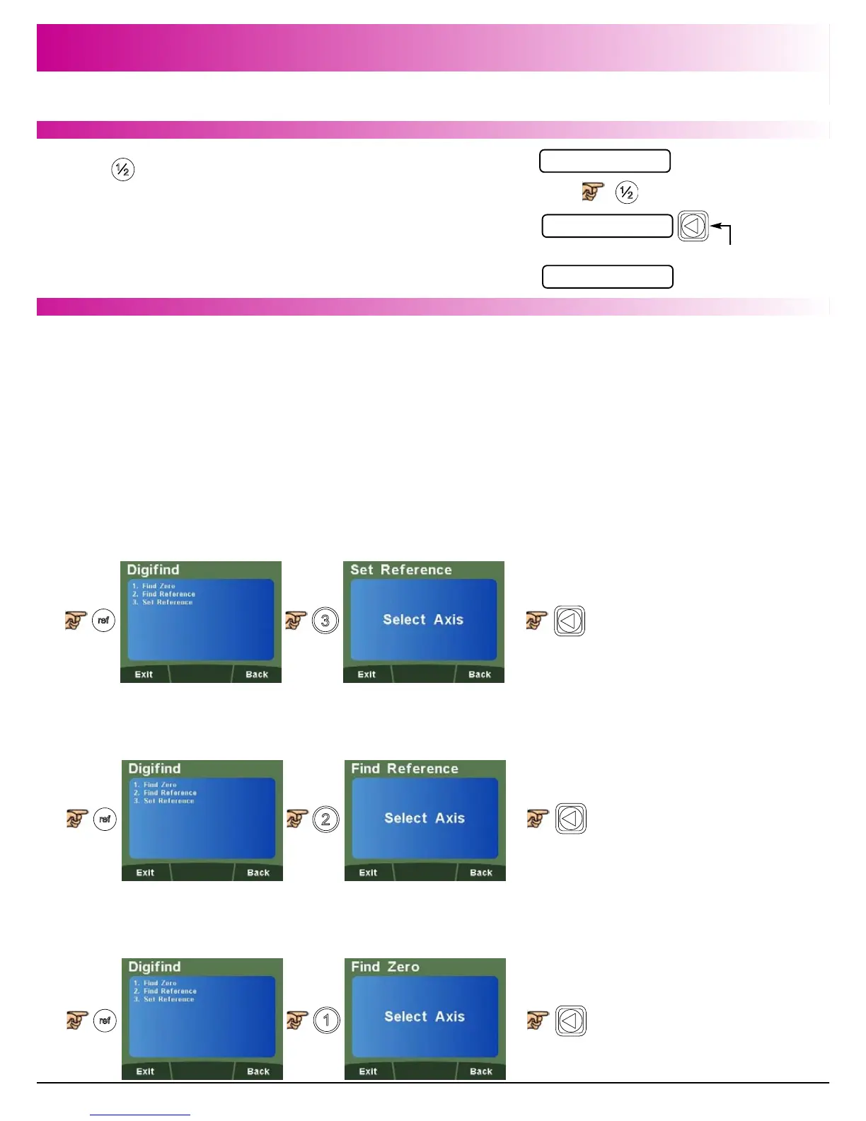 As a fail safe, Digifind can “Find” the last datum or absolute zero set. Position the machine within a