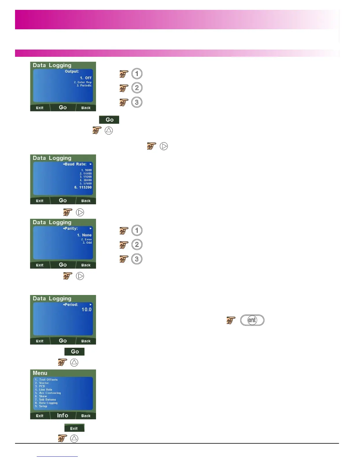 to return to the main menu and disable Data Logging