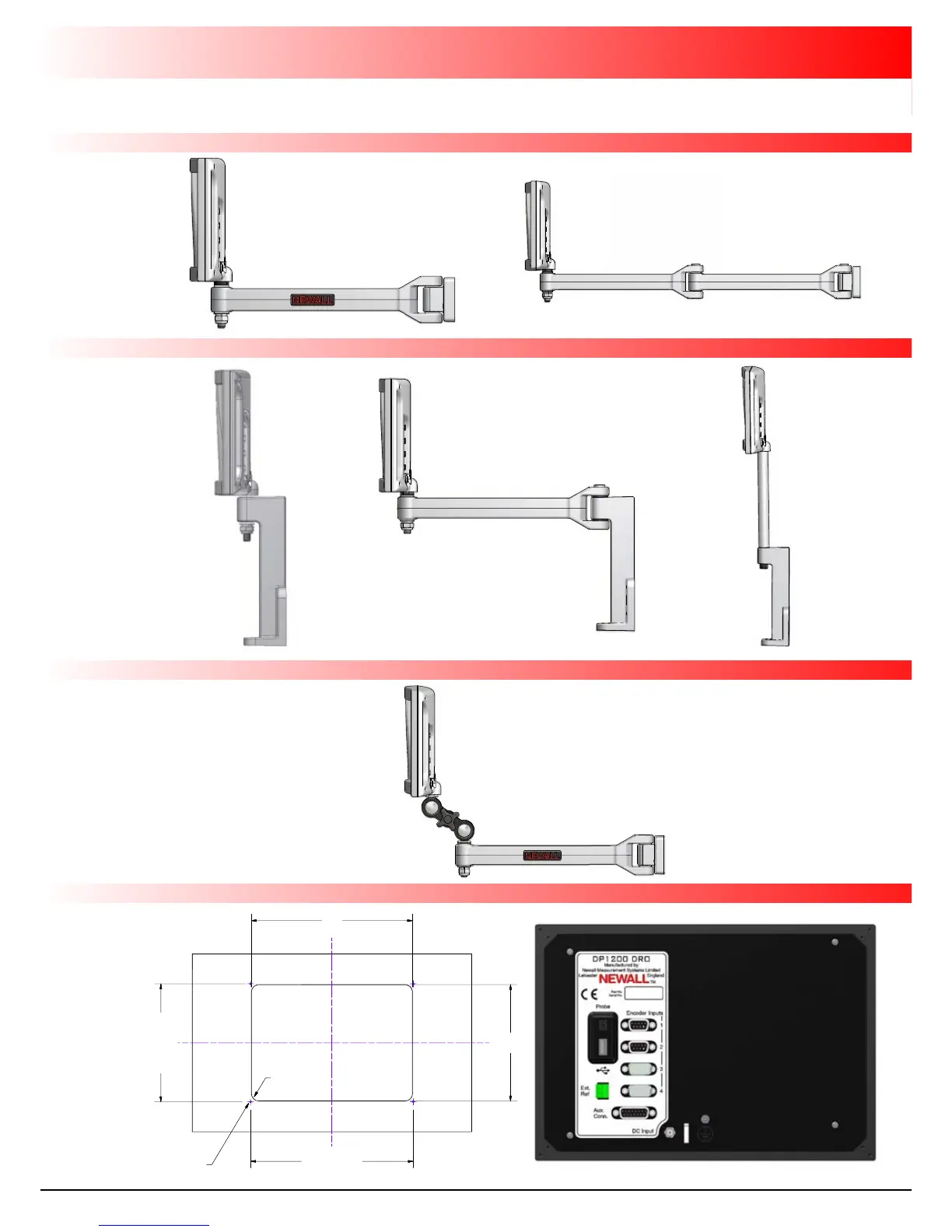 Newall dp1200 - Mounting Options; Mill Mount; Lathe Mount; Adjustable Mount Options