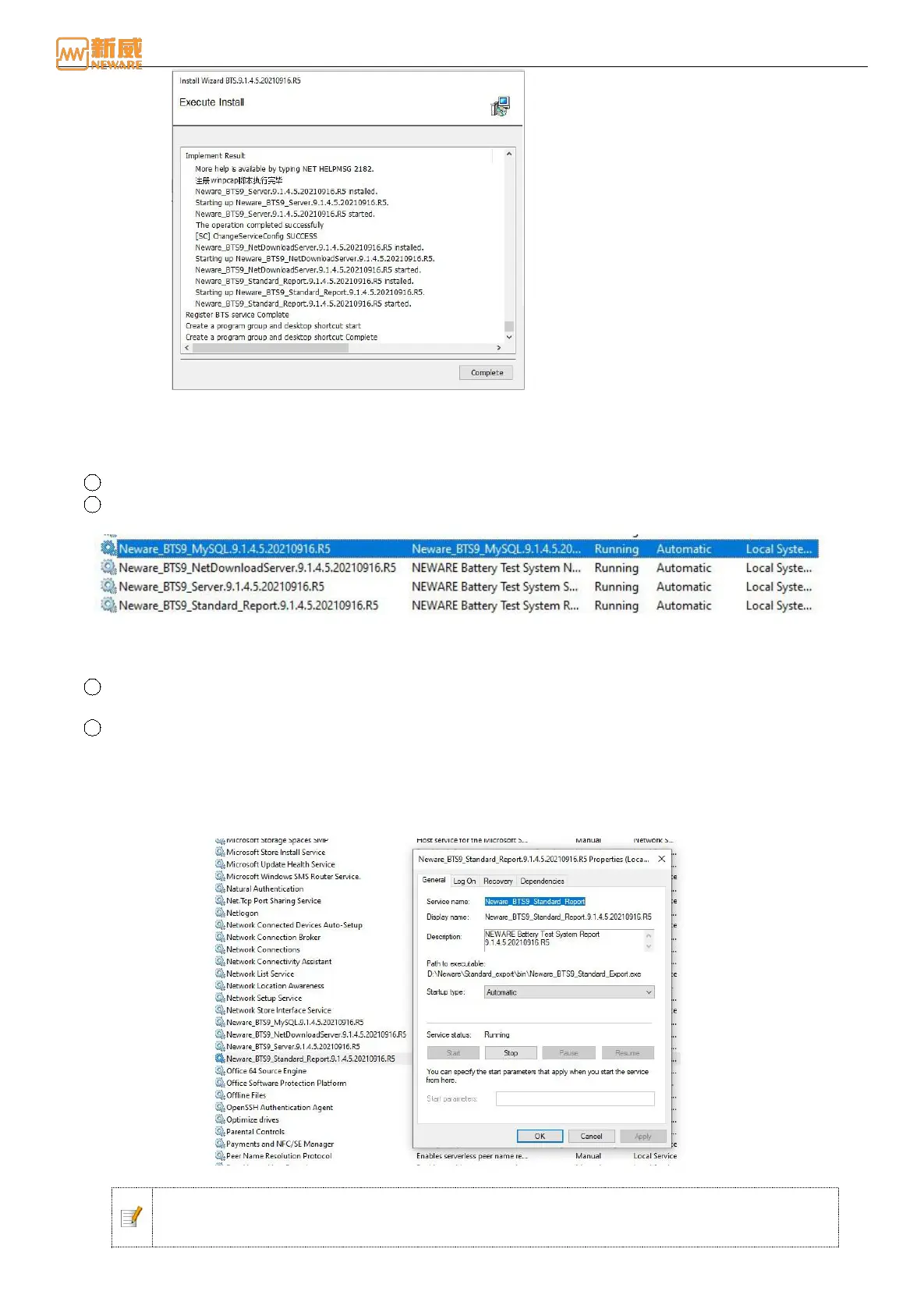 Neware_BTS9_Standard_Report service, whose startup type is manual, is used as an example.