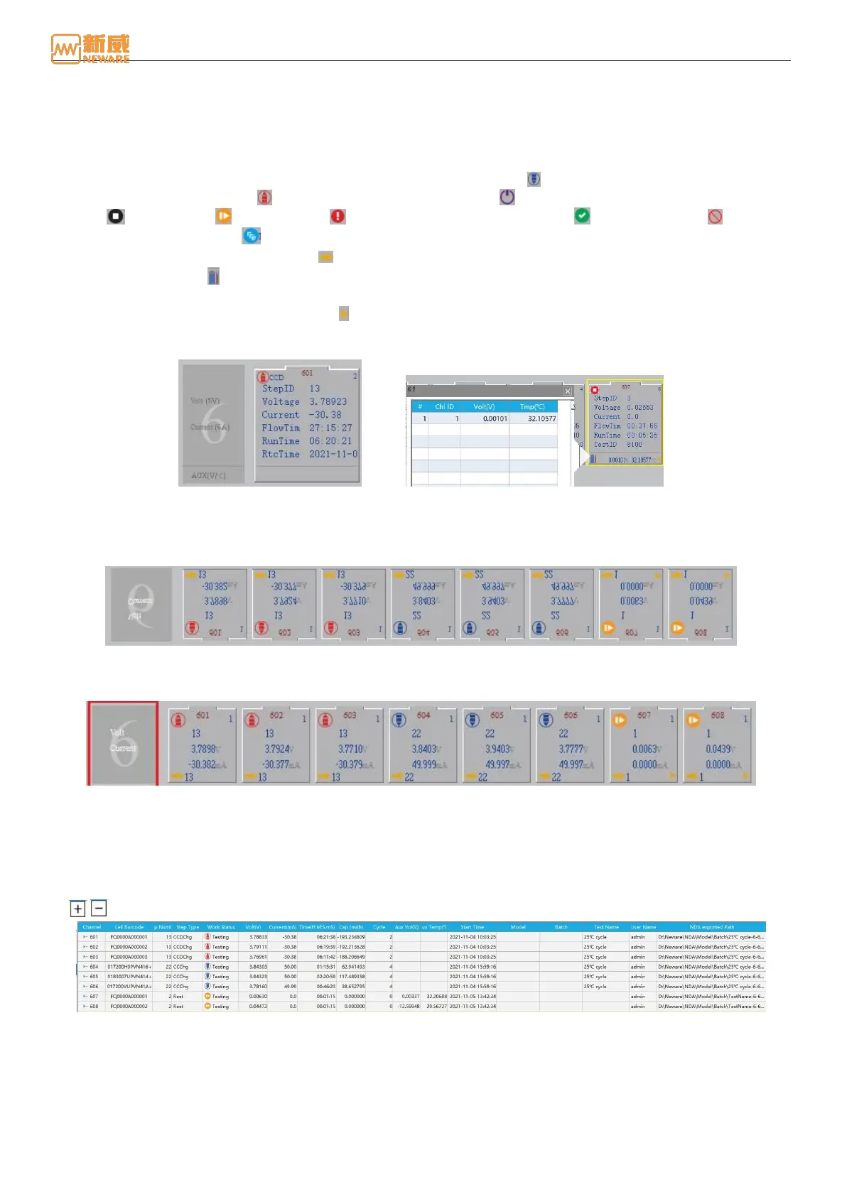 2. As shown in the figure above, the channel icon are displayed: channel number, step number, execution status (charge,
