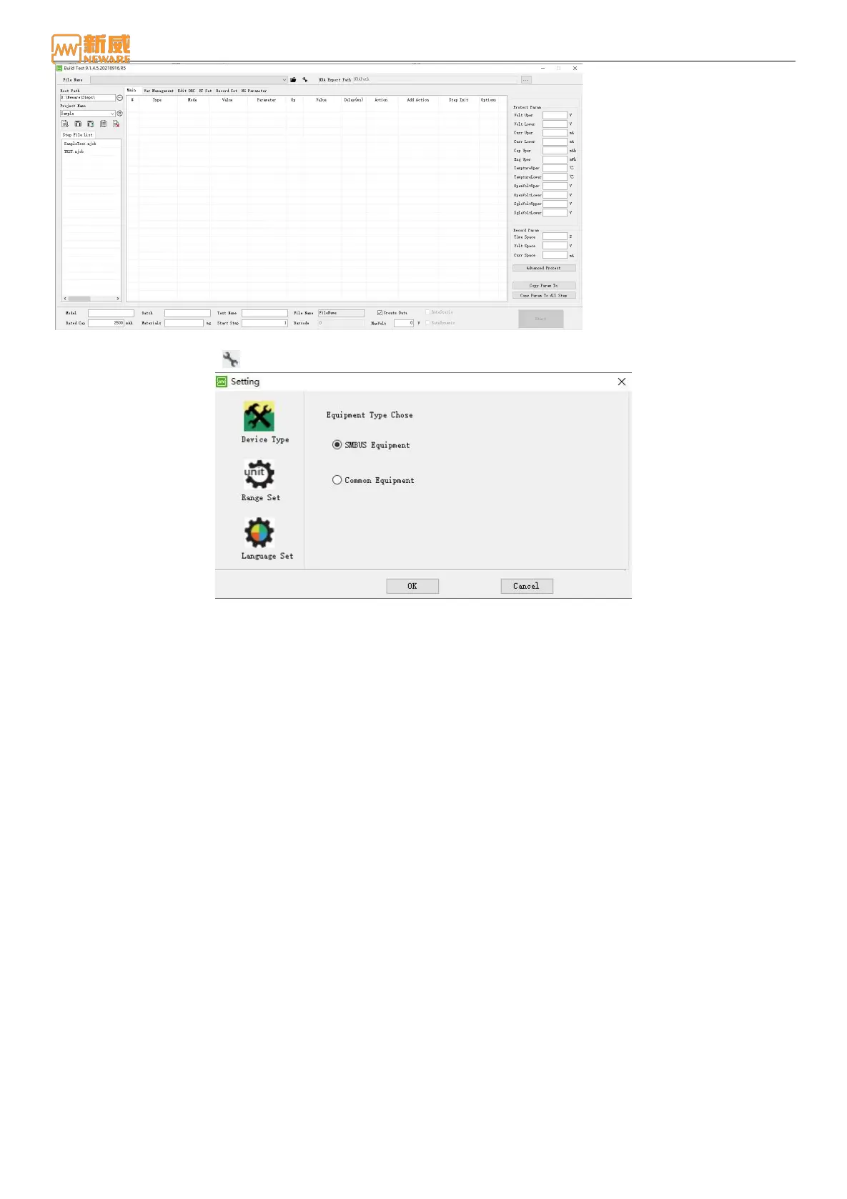 1. Click the setting button , to set the Device Type, Range Set and language Set.