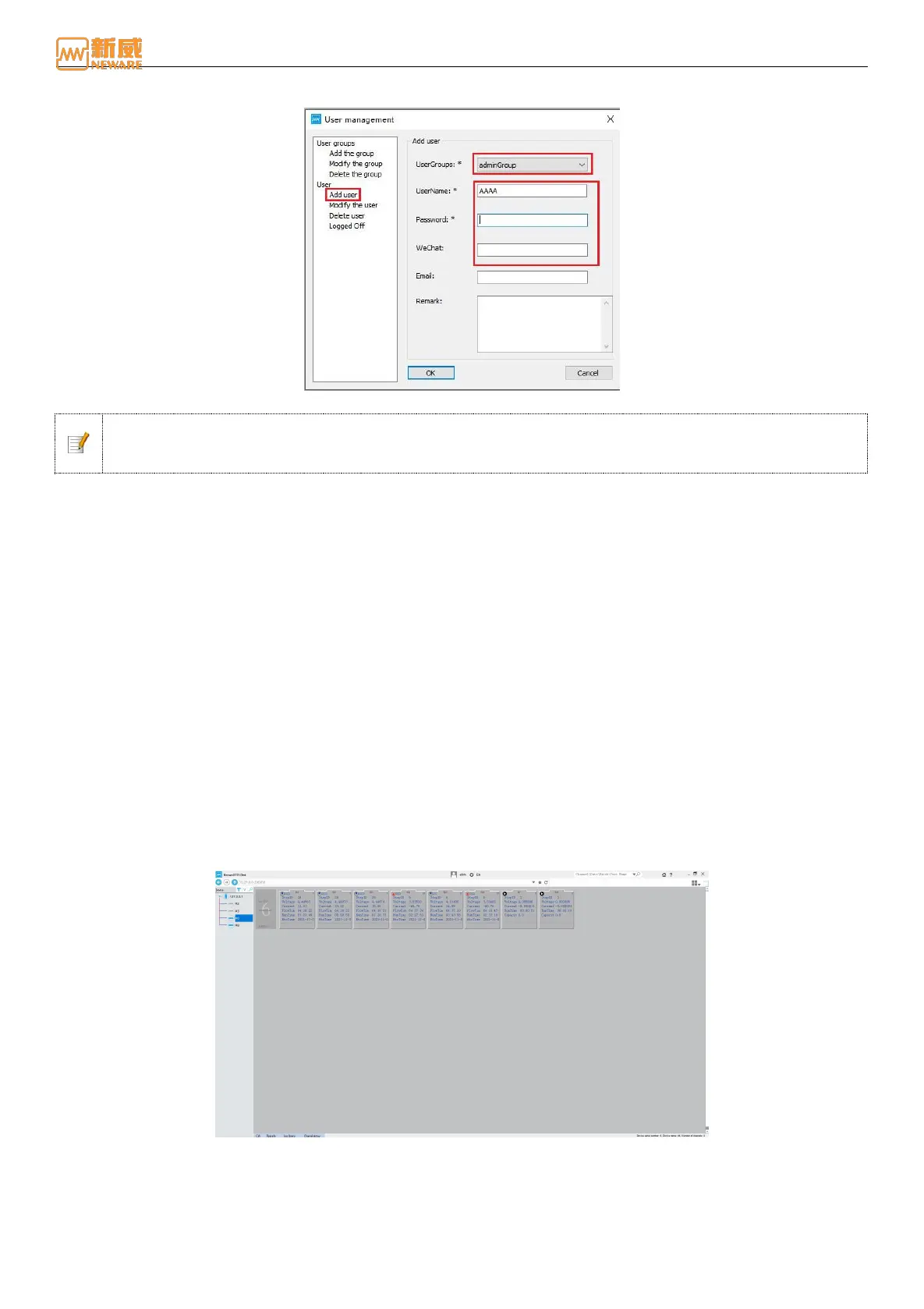 Notice: On the Users management interface, you can define different user groups and their operation