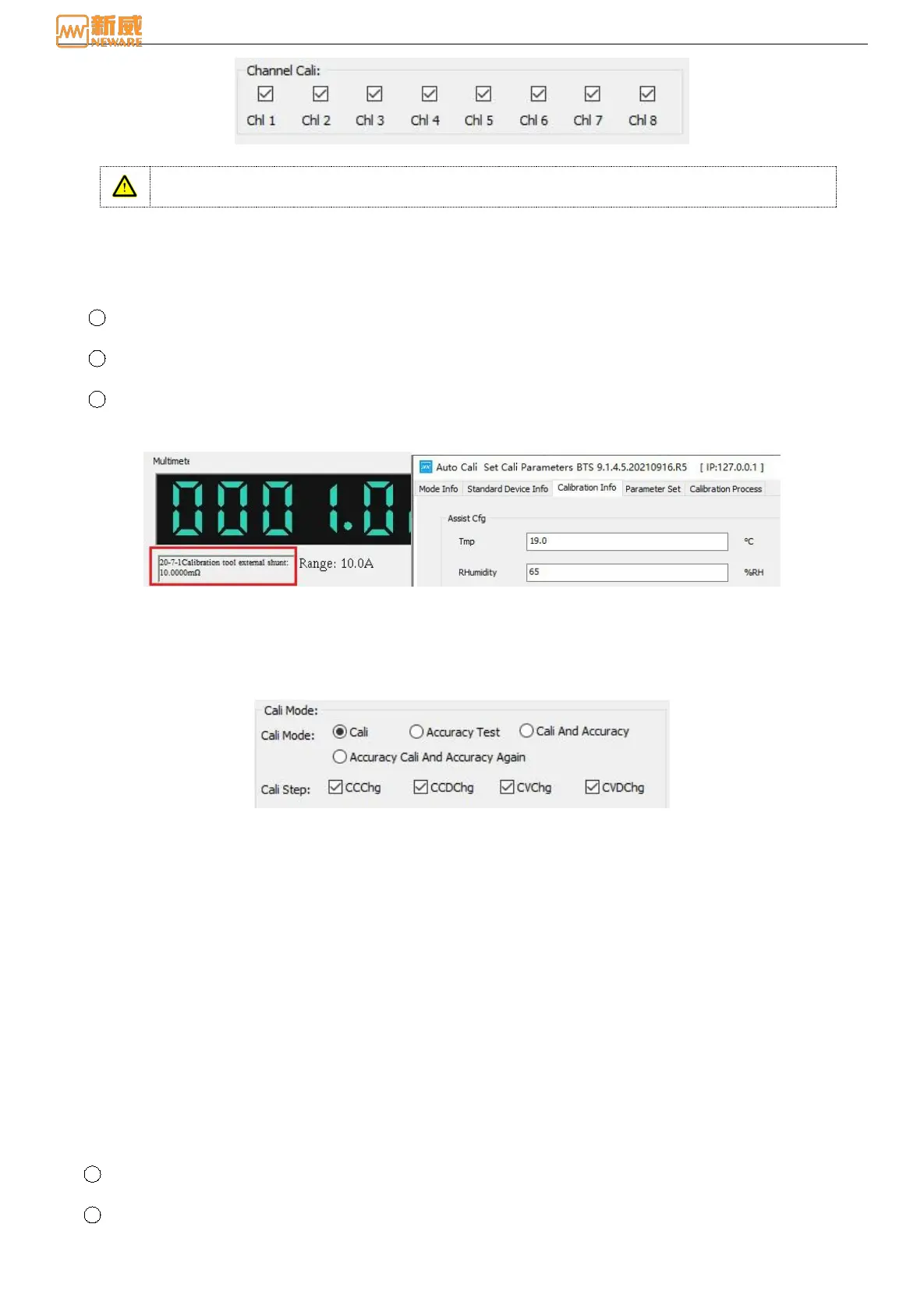 Calibration: After the user selects the channel to be calibrated and sets the calibration parameters, each calibration
