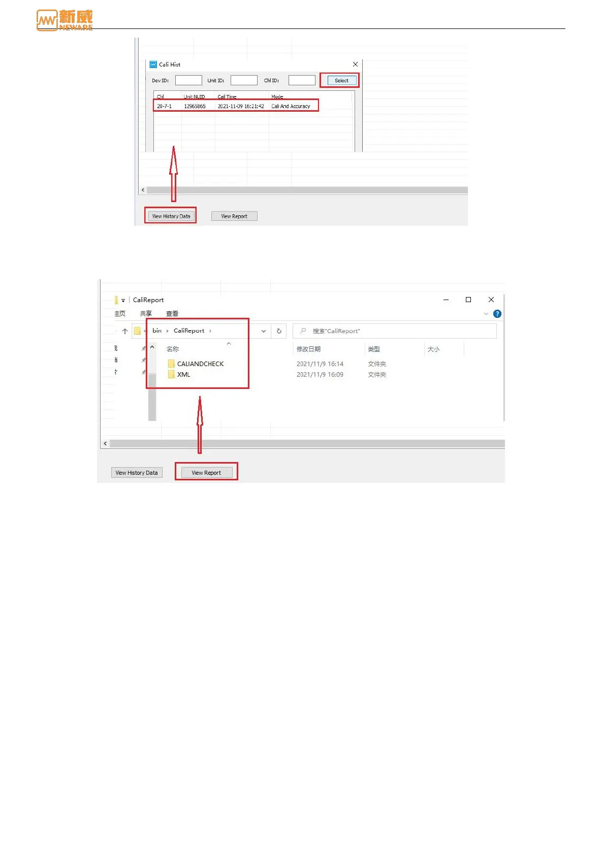 Click the View Report button to automatically jump to the CaliReport folder under the installation directory, as shown