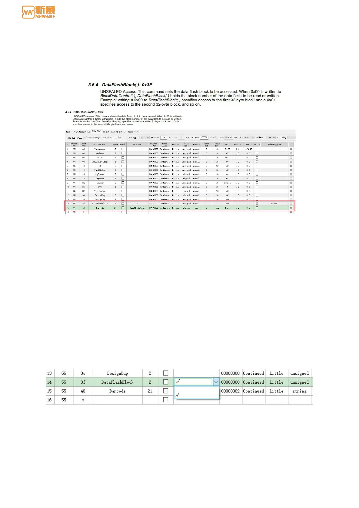 As shown in the figure above, Barcode refers to the barcode of the battery. The data address of the barcode is at position 40.
