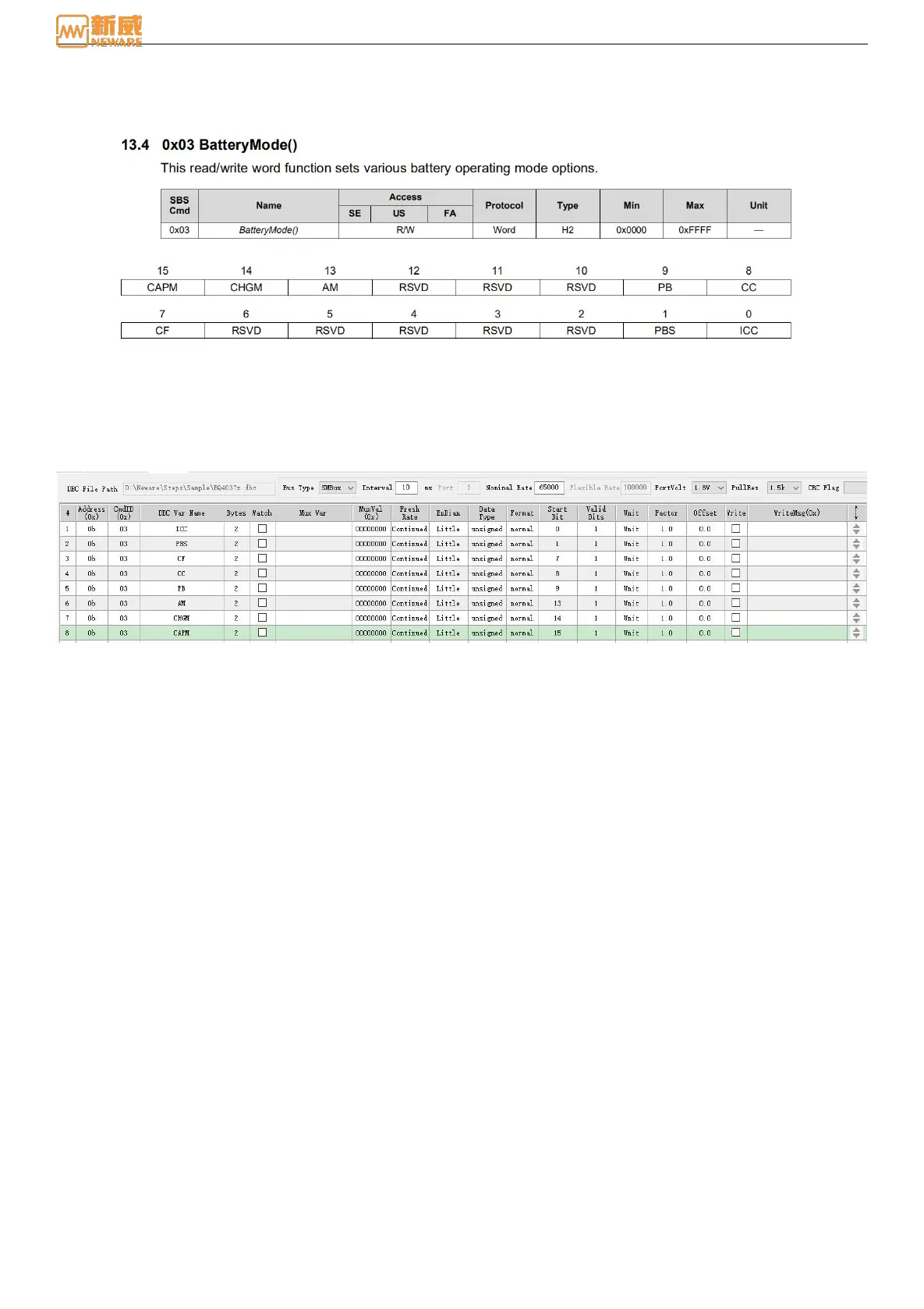 As shown in the figure above: BatteryMode is a 16-bit, 2-byte data type. Each bit of BatteryMode represents a specific