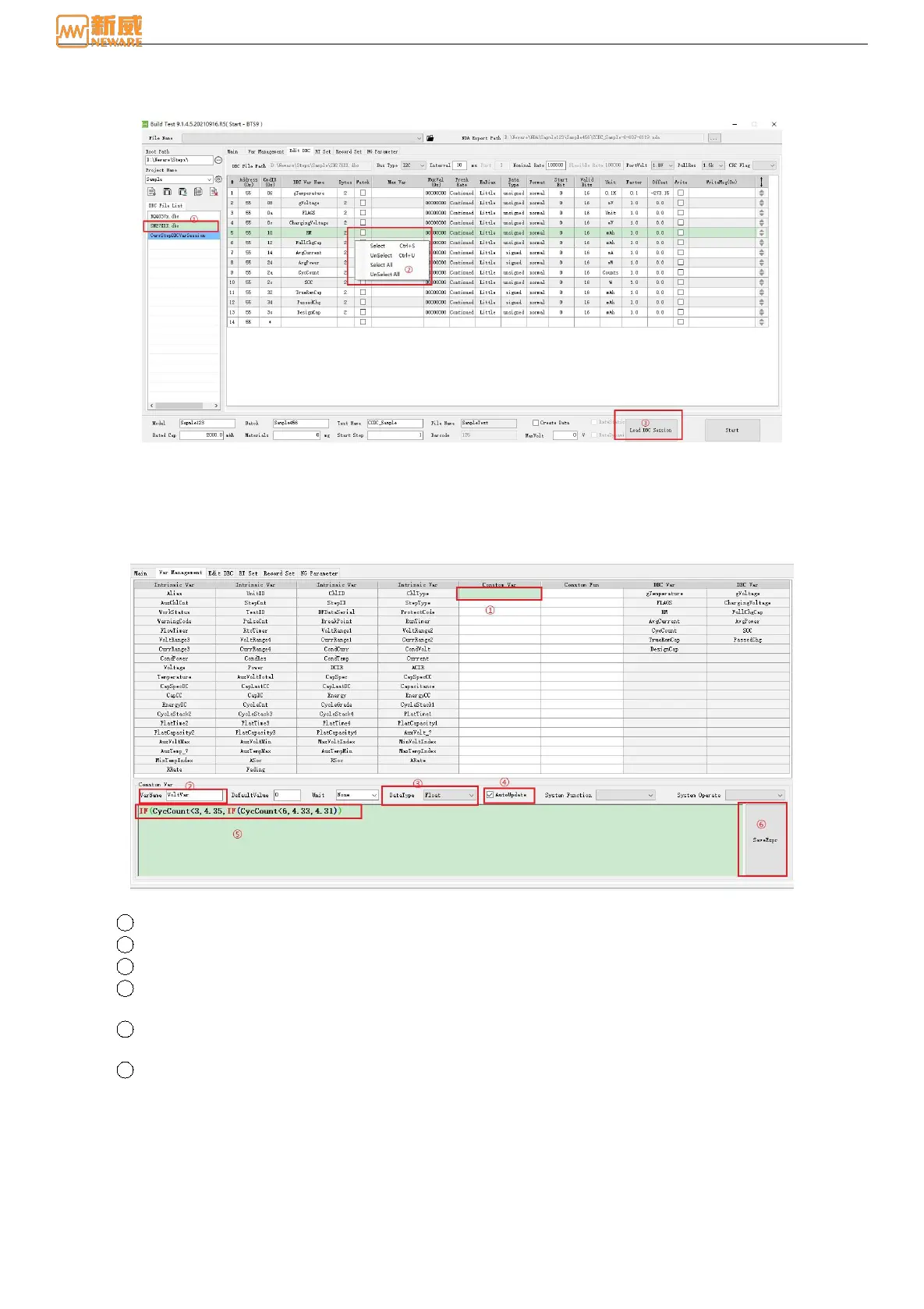 VoltVar IF(CycCount<3,4.35,IF(CycCount<6,4.33,4.31)) CycCount isDBC variable, which means VoltVar change based on CycCount