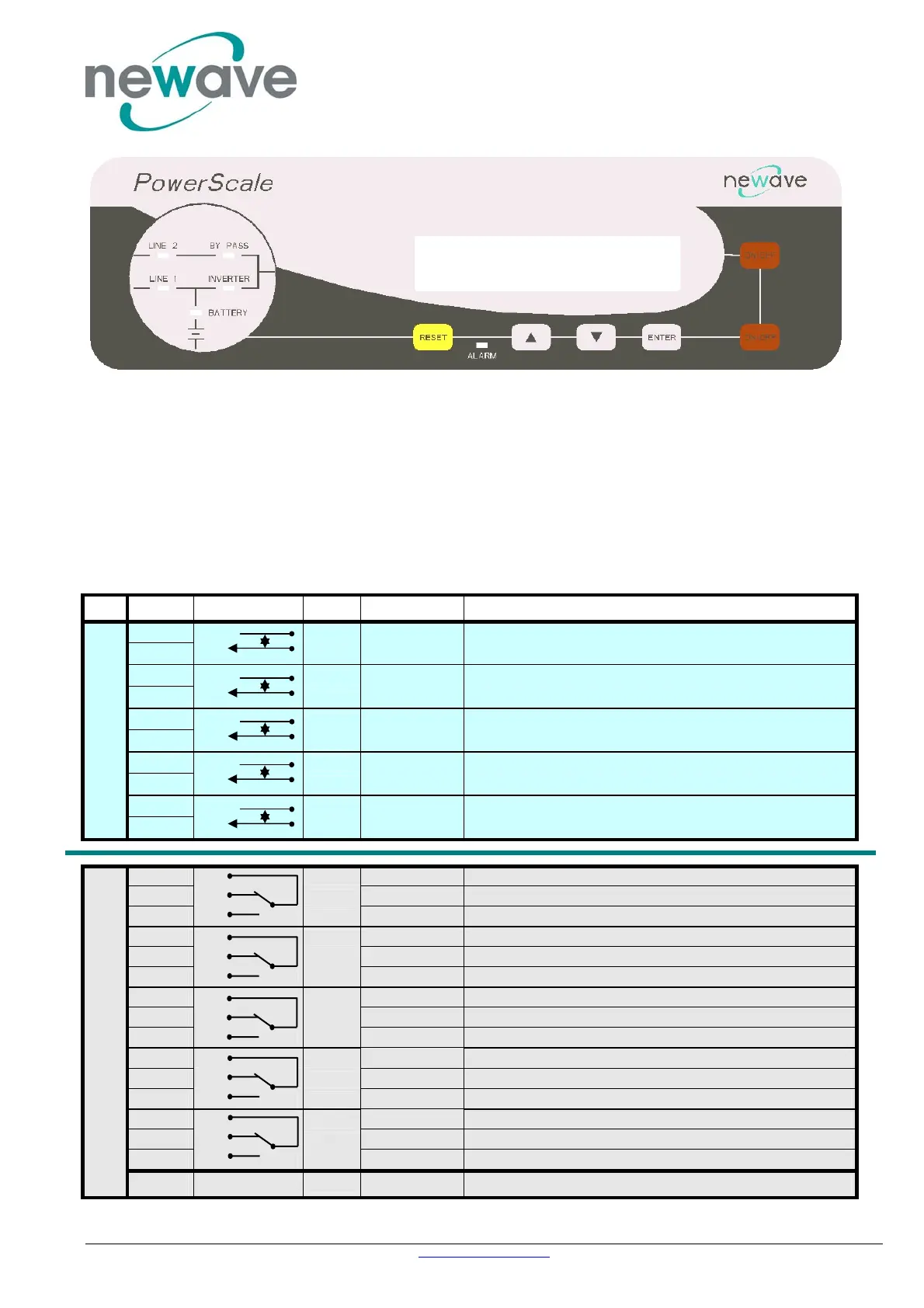 All voltage free contacts are rated 60 VAC max. and 500 mA max.: