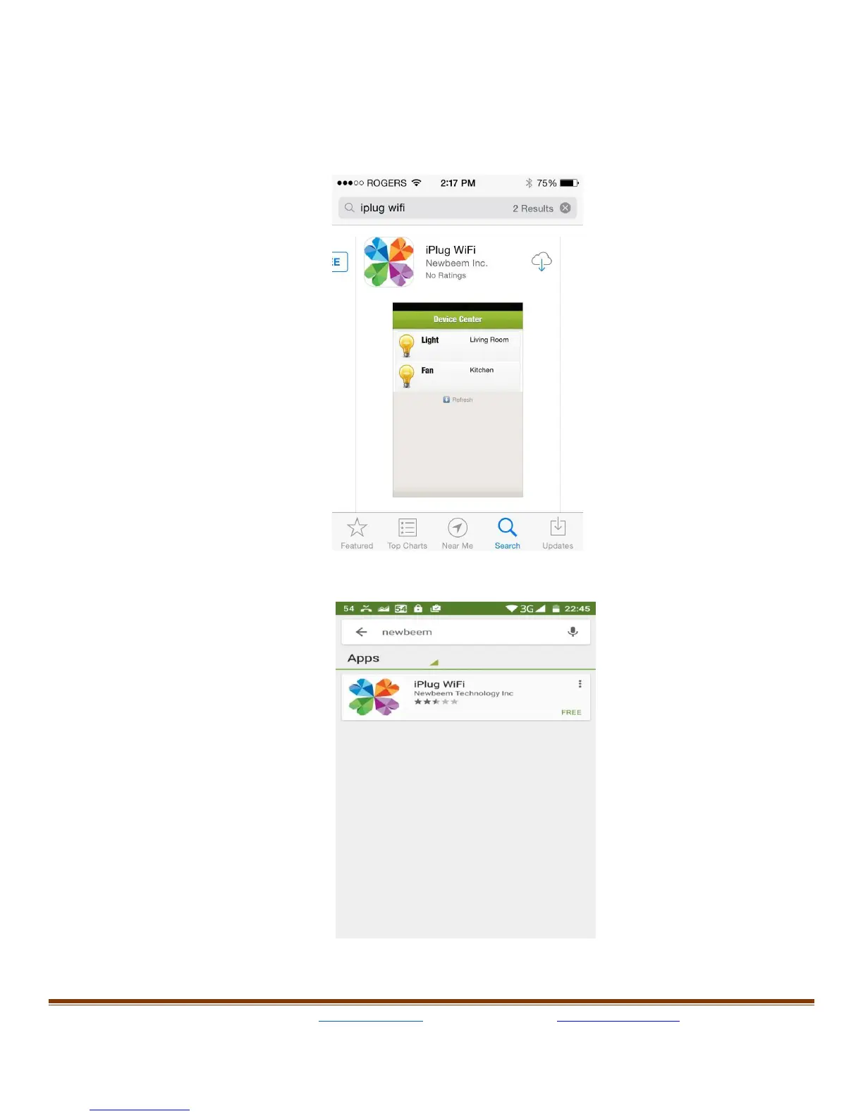 For iOS devices, search “iPlug Wi-Fi” or “newbeem in the Apple