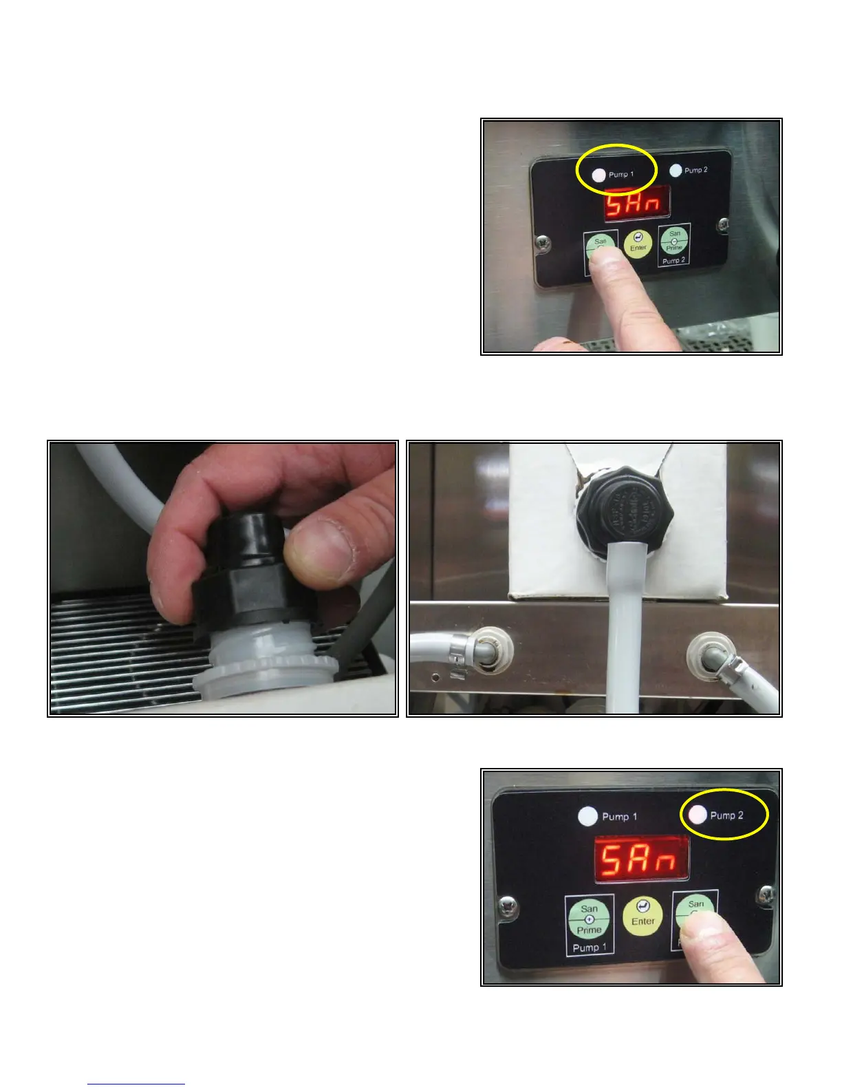 Press Pump 2 button to begin sanitizing Pump as shown