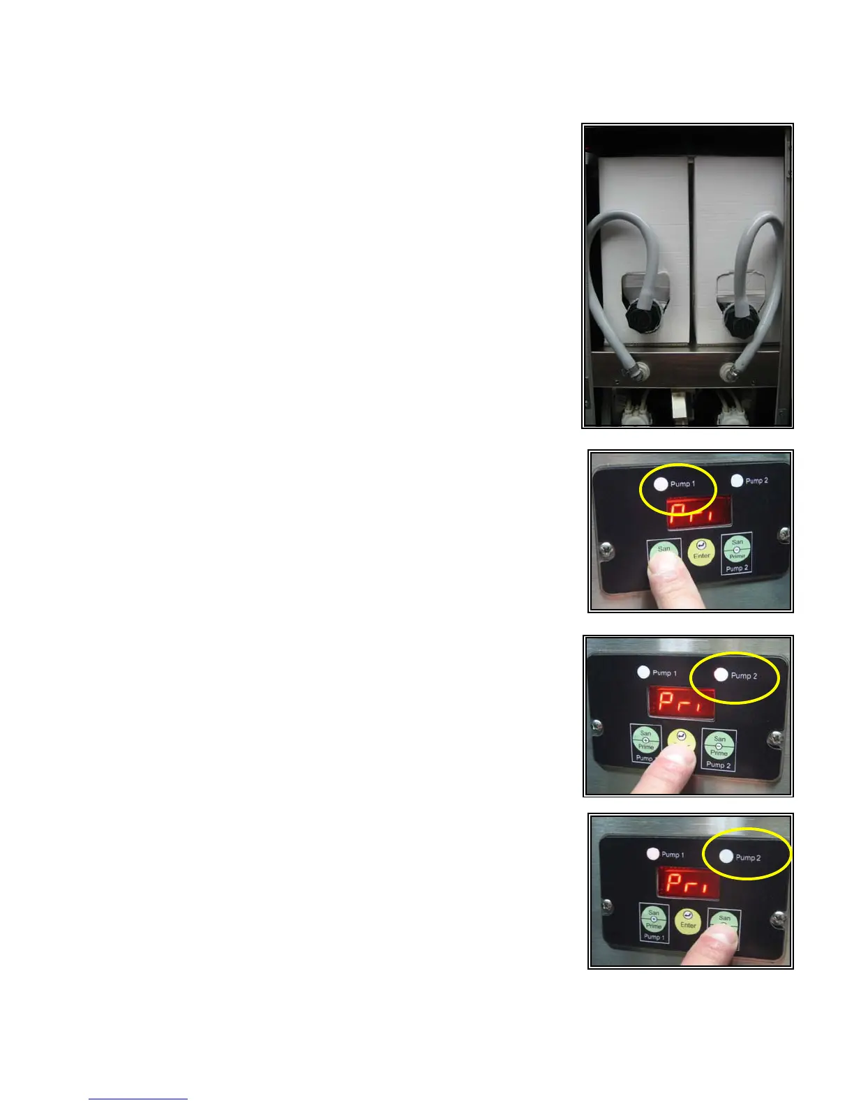 Press and hold Pump 2 button until product flows from dispense head
