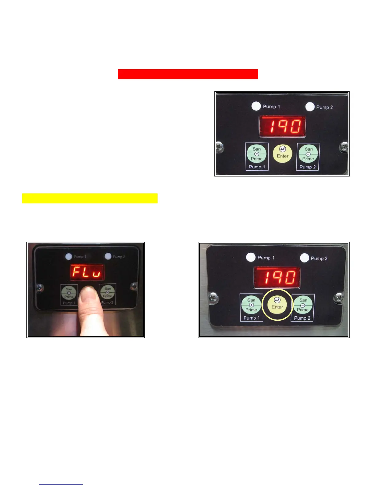 Press and hold the center switch labeled “Enter”. After five seconds, the display will flash “Flu”