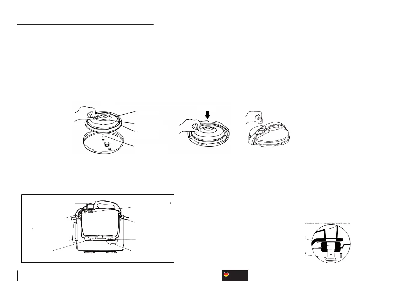 Innendeckel, der Deckel, der Silikonring und das Druckablassvenl. Sie werden mit Seifenwasser und einem Schwamm oder,