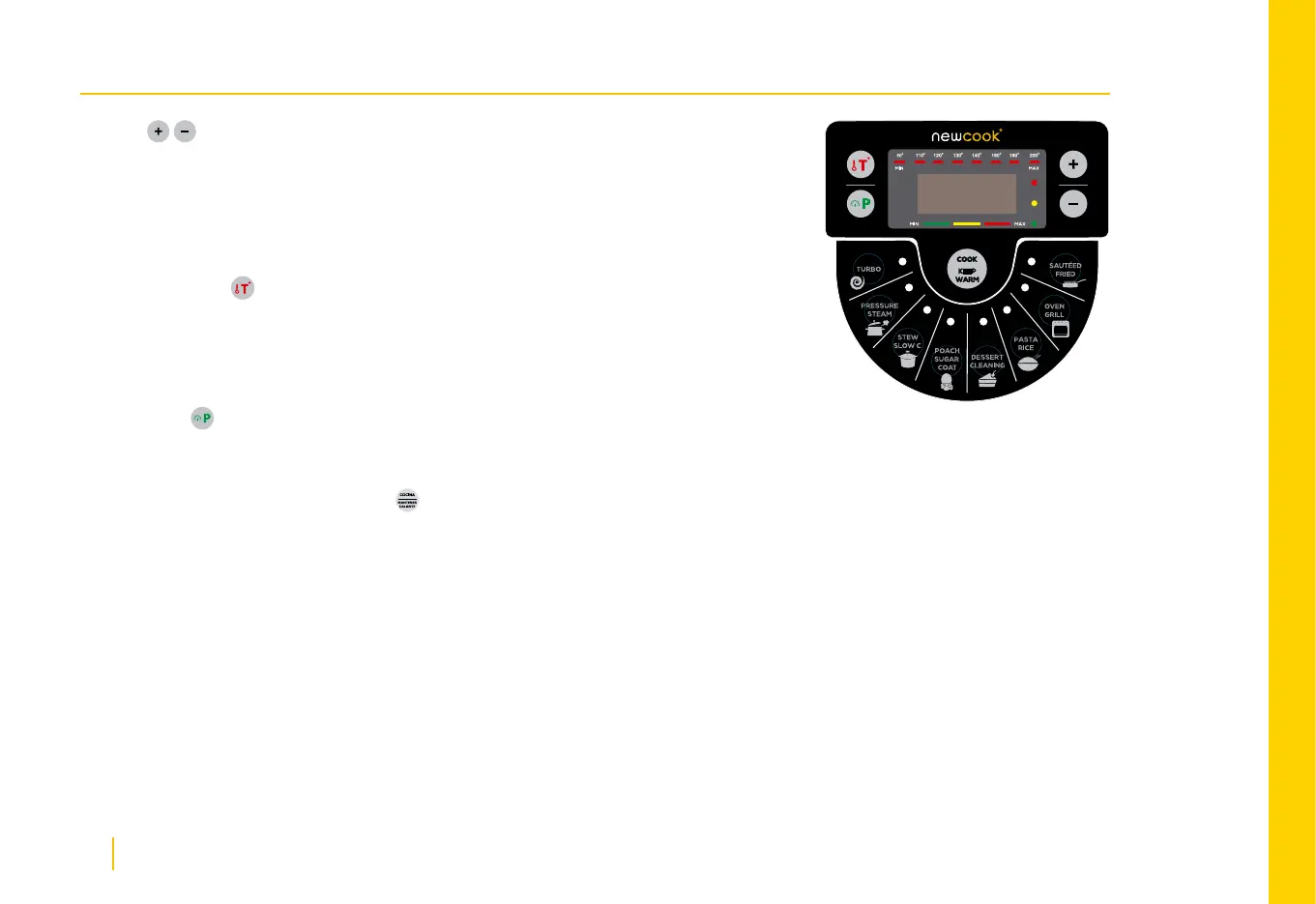 Pressing this button can adjust the temperature from 90 ° to 200 °. The menus have a