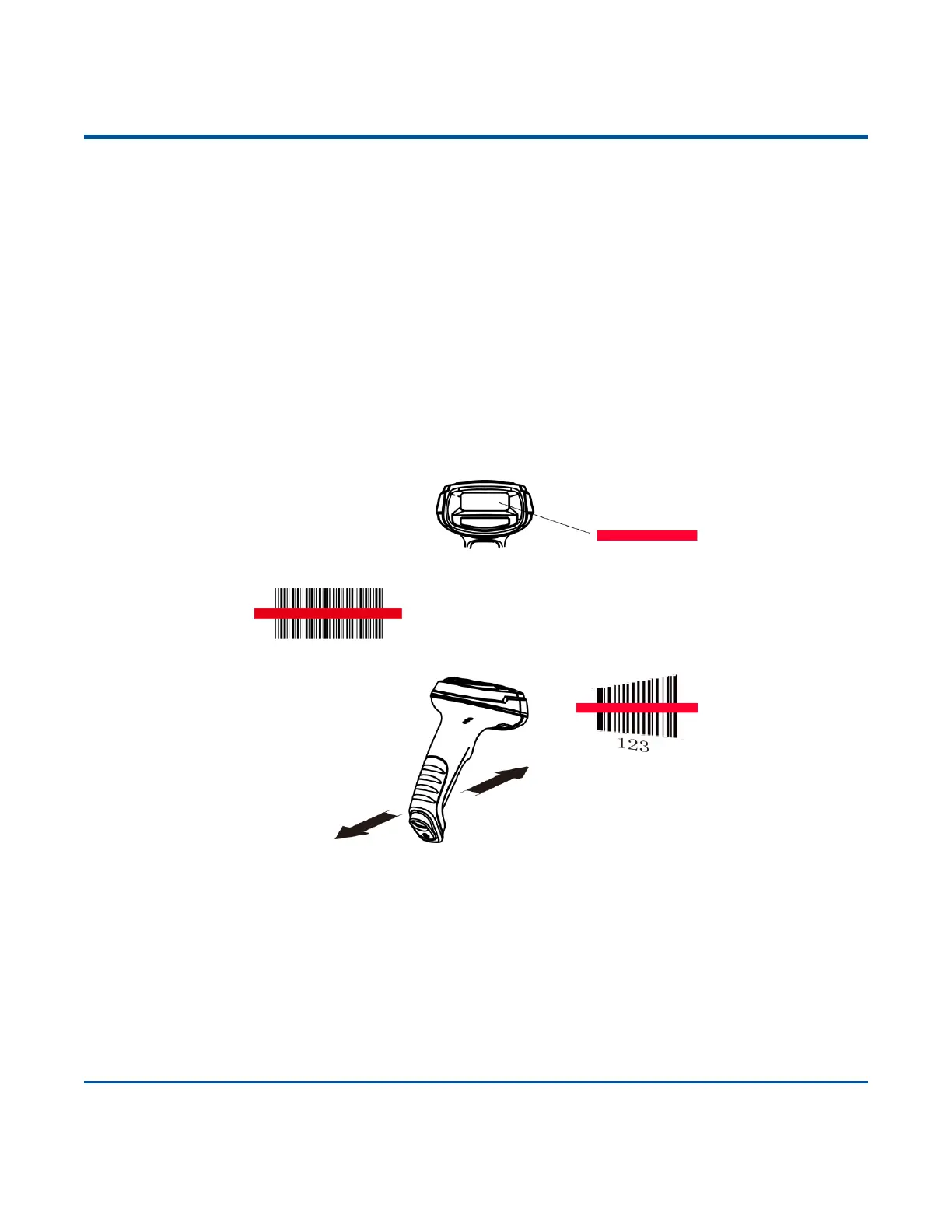 2. 아래 그림과 같이 바코드의 중심을 가로 지르는 빨간색 빔을 조준하십시오.