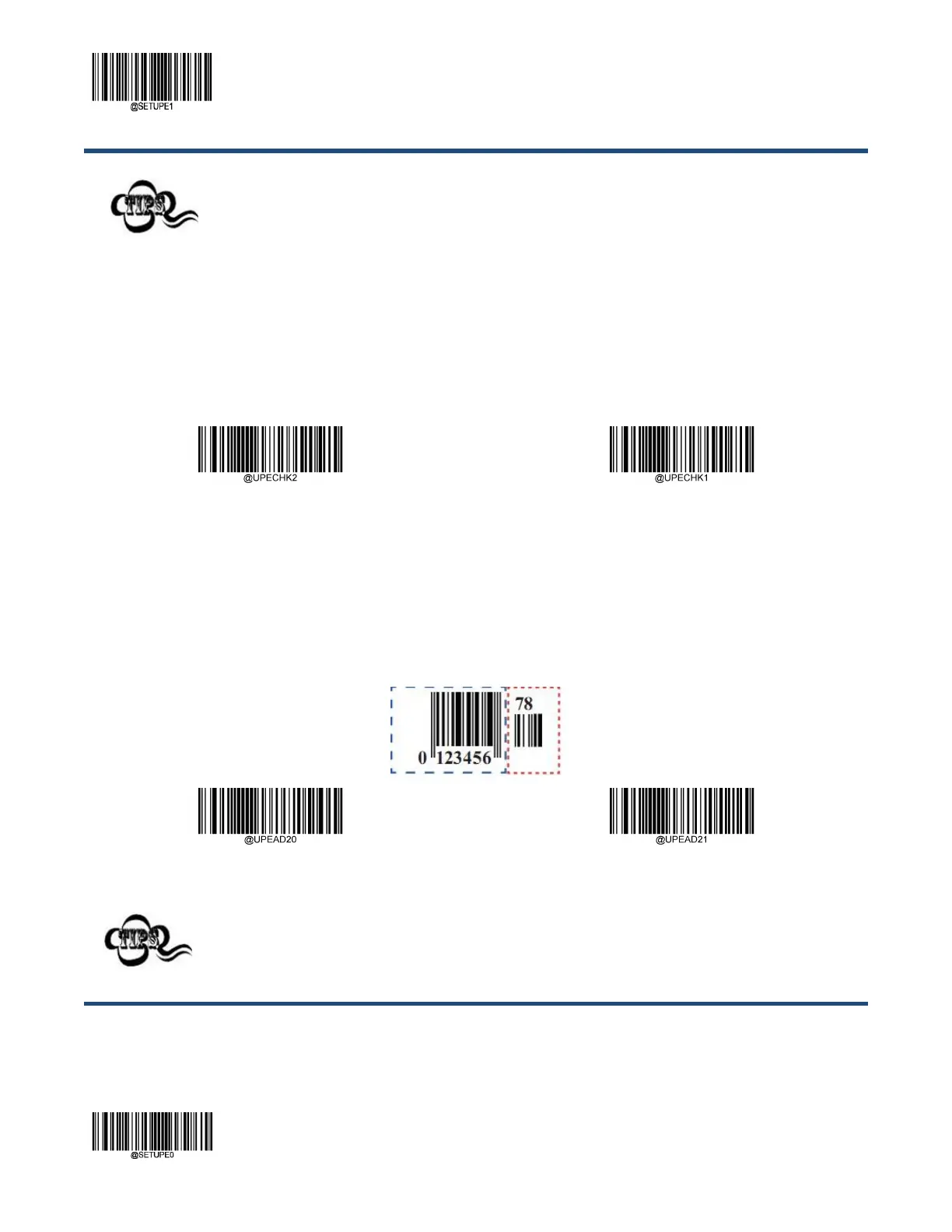 스캐너가 UPC-E바코드를 식별하지 못하면 Enter Setup 바코드를 스캔 한 다음 Enable UPC-E을 스캔한