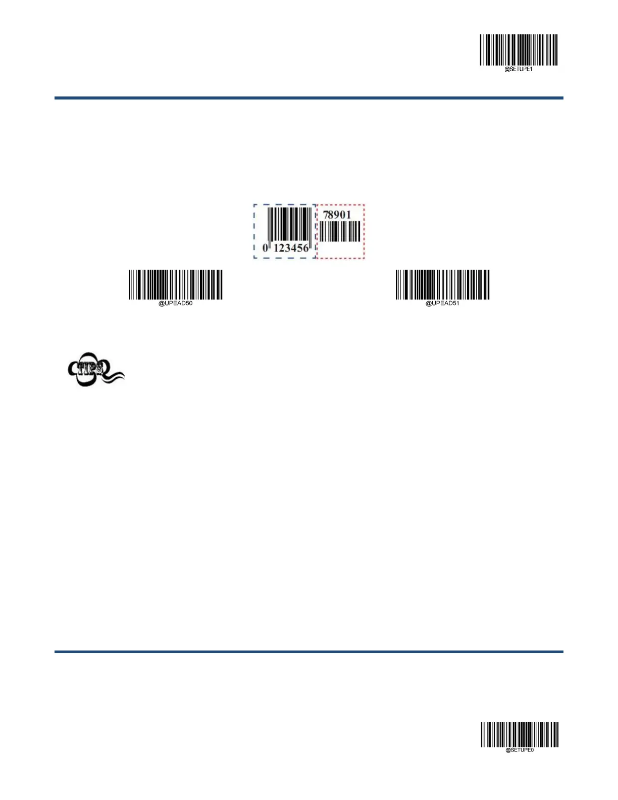 UPC-E 바코드는 5 자릿수의 애드온 코드로 새로운 형태의 코드를 작성할 수 있습니다. 아래 예에서 파란색 점선으로 둘러