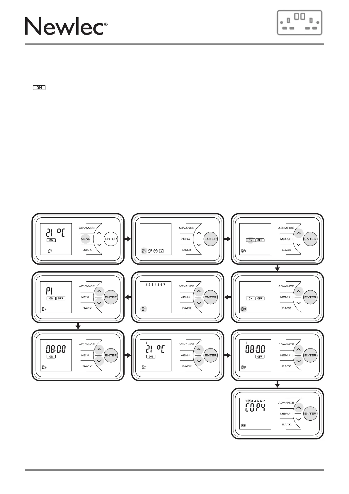 Press Enter to modify Programme P2, follow steps 1-8, Press Up to skip to P3
