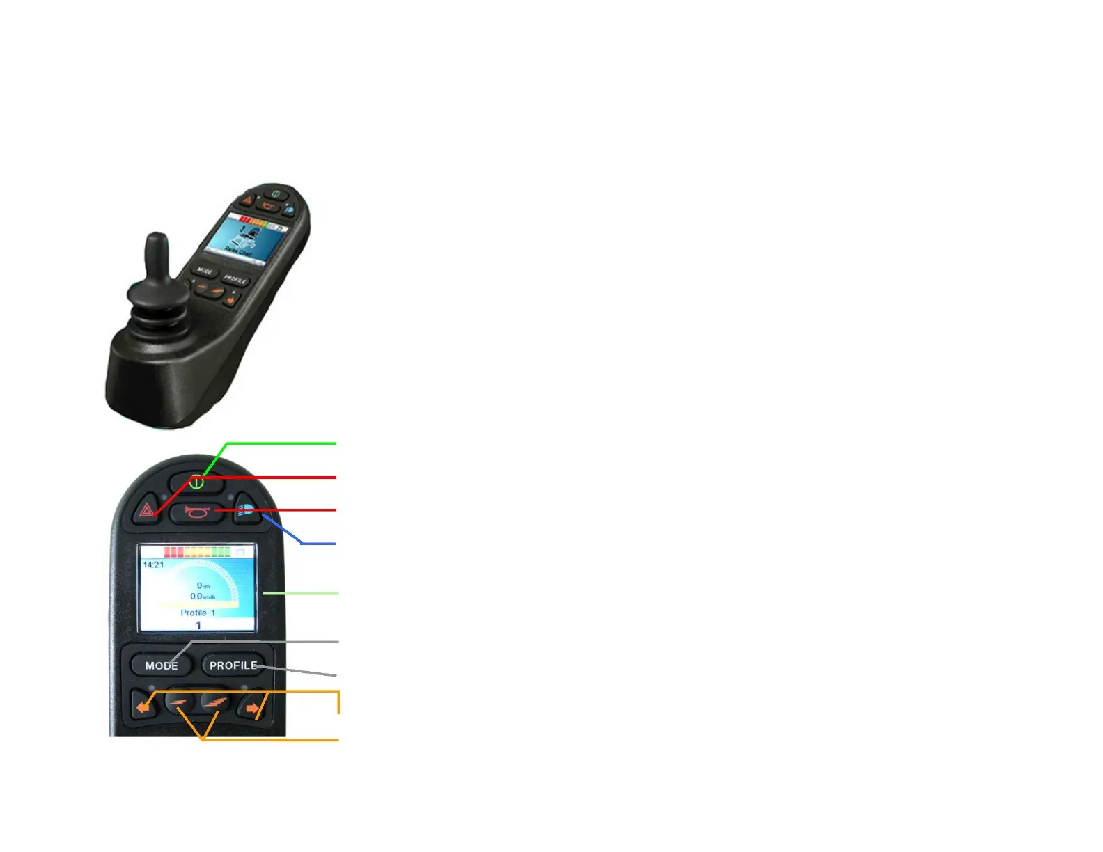 directions. The wheelchair always follows the direction which is given by the joystick. If you move the