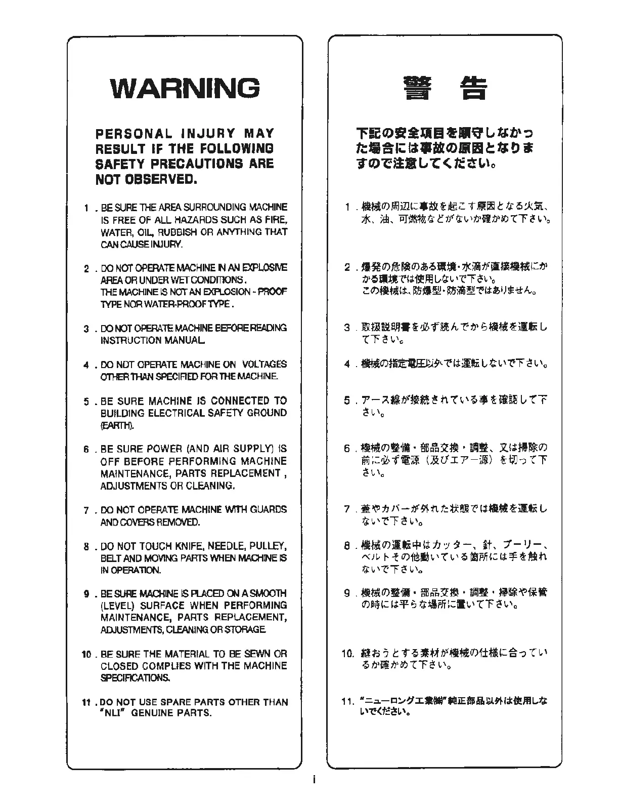 Newlong DD-5 - WARNING: Safety Precautions; General Safety Precautions