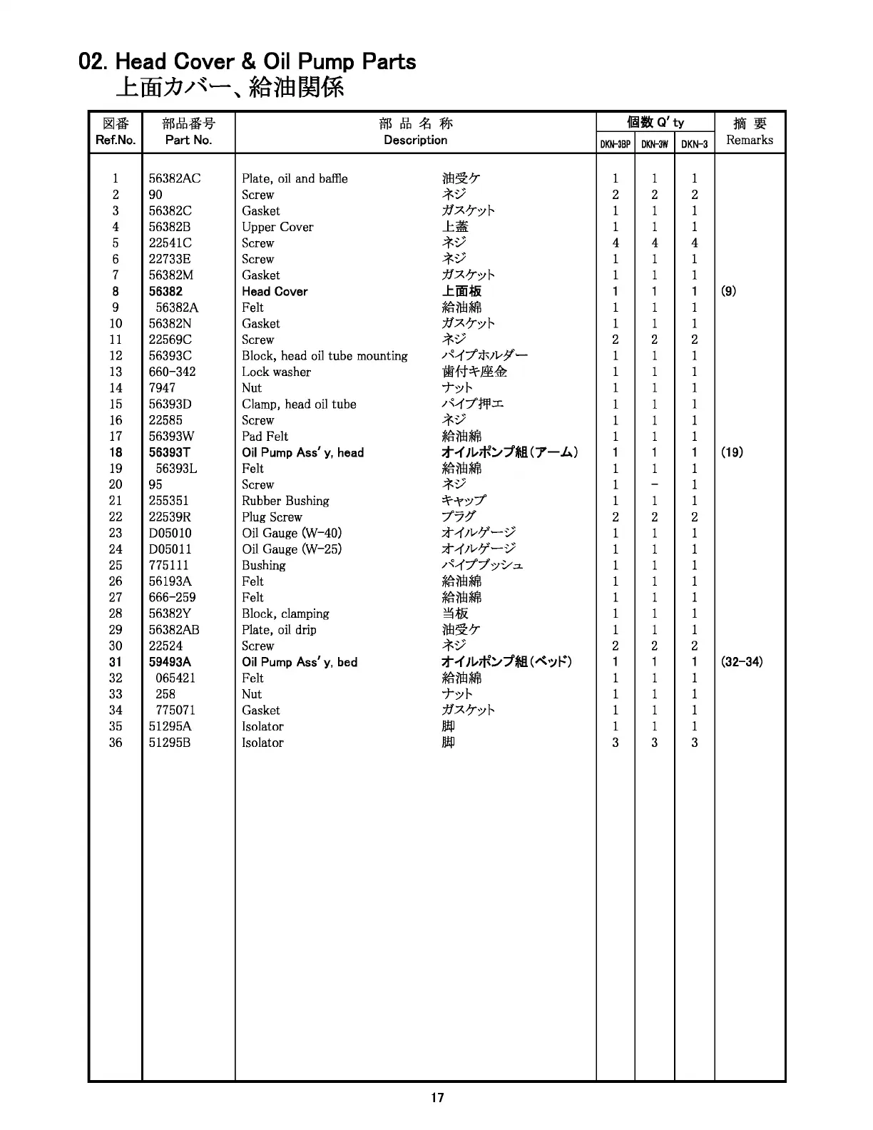 Newlong DKN-3 - Head Cover B & Oil Pump Parts