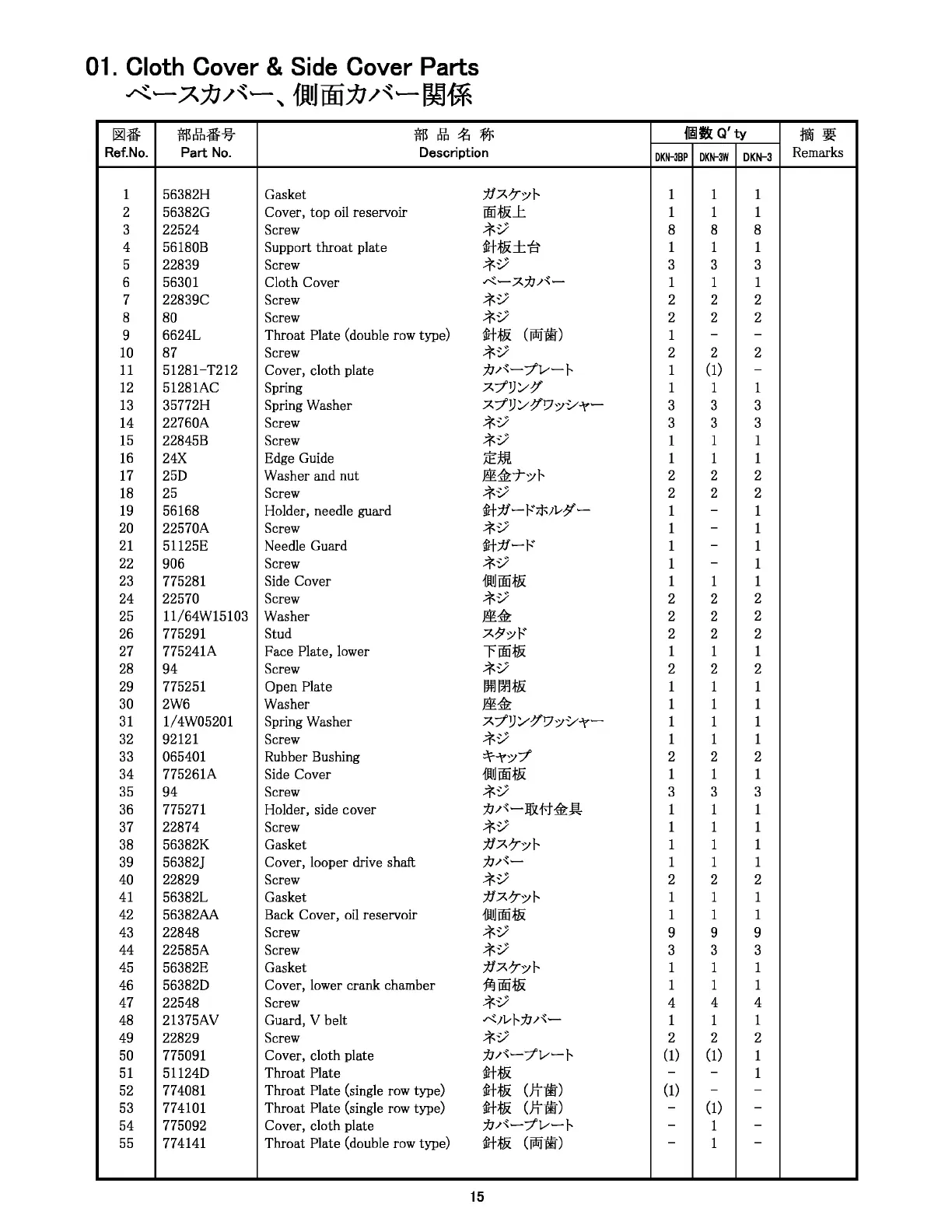 01. Cloth Cover & Side Cover Parts