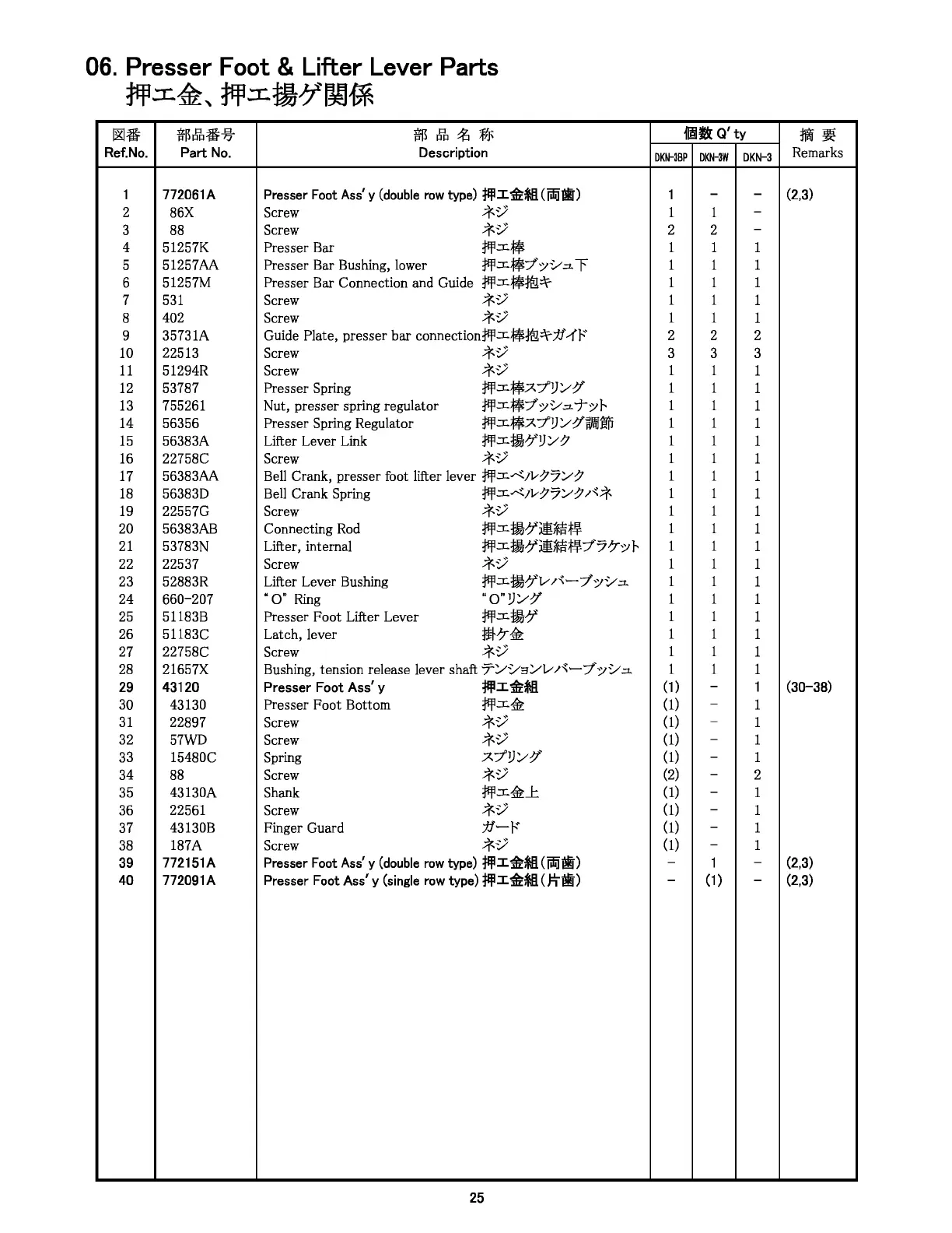 Presser Foot & Lifter Lever Parts