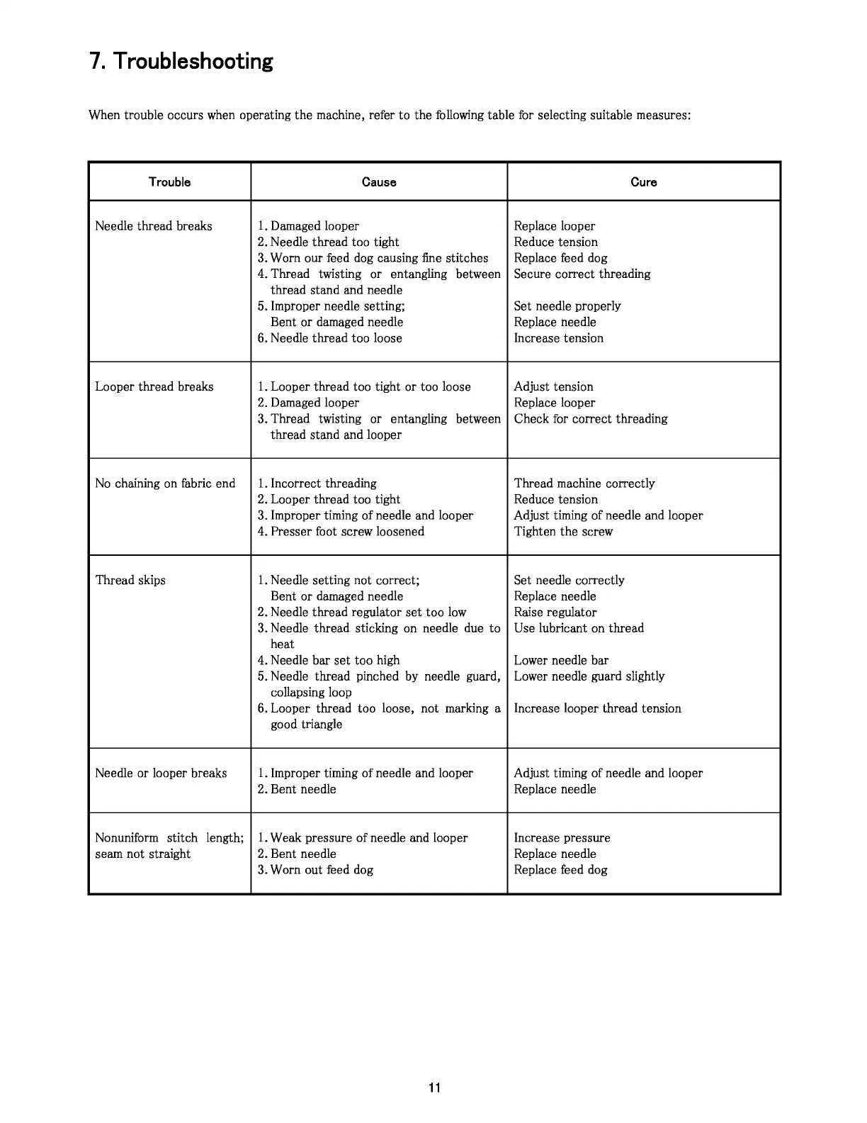 5. Improper needle setting;