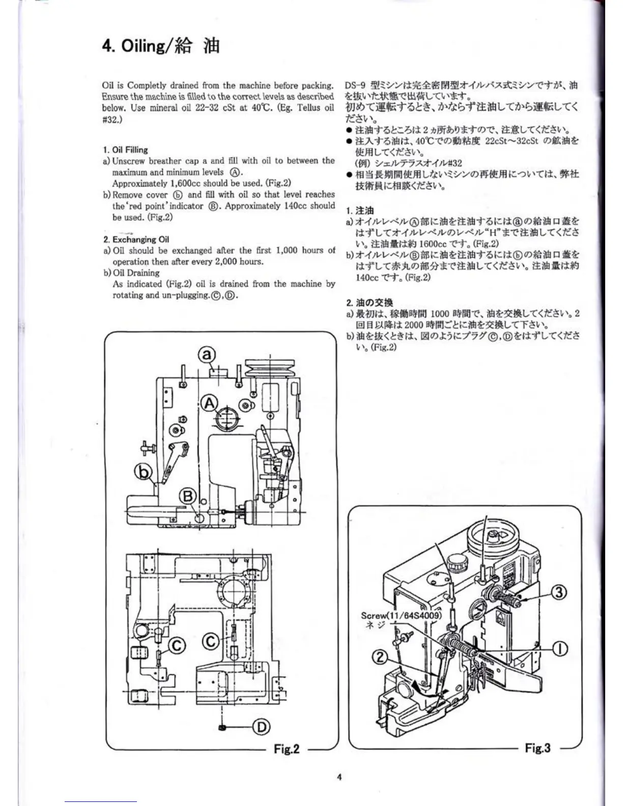 Newlong DS-9A - Oiling Procedures; Initial Oil Filling; Oil Exchange Schedule