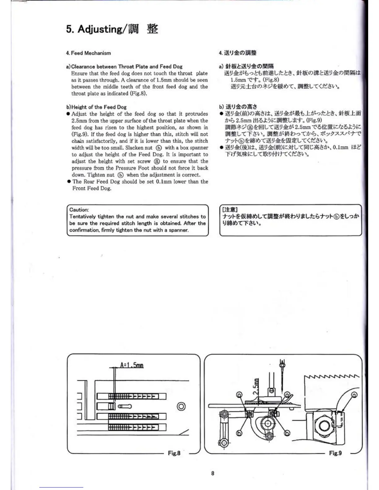 b)Height of the Feed Dog