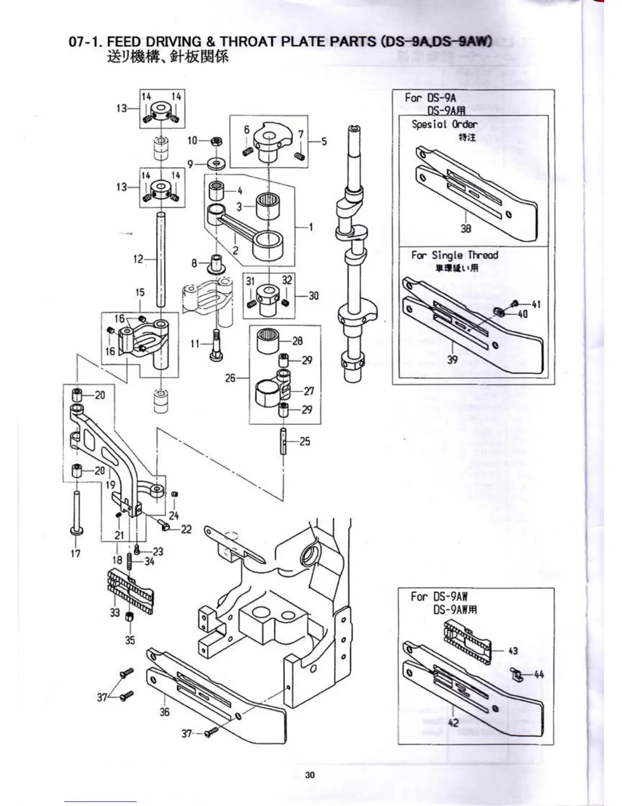 Newlong DS-9CW - Feed Driving & Throat Plate Parts