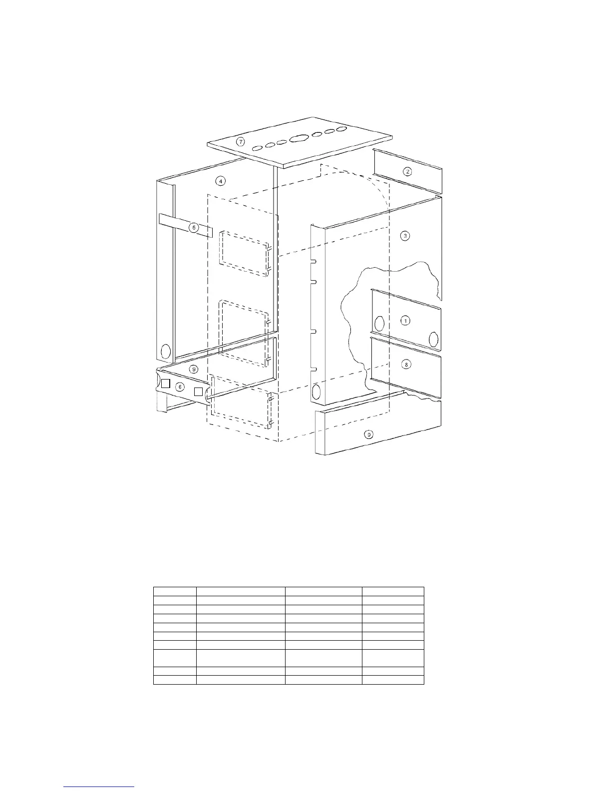 9. Place top panel (7) over top of other panels and fasten in place with screws.