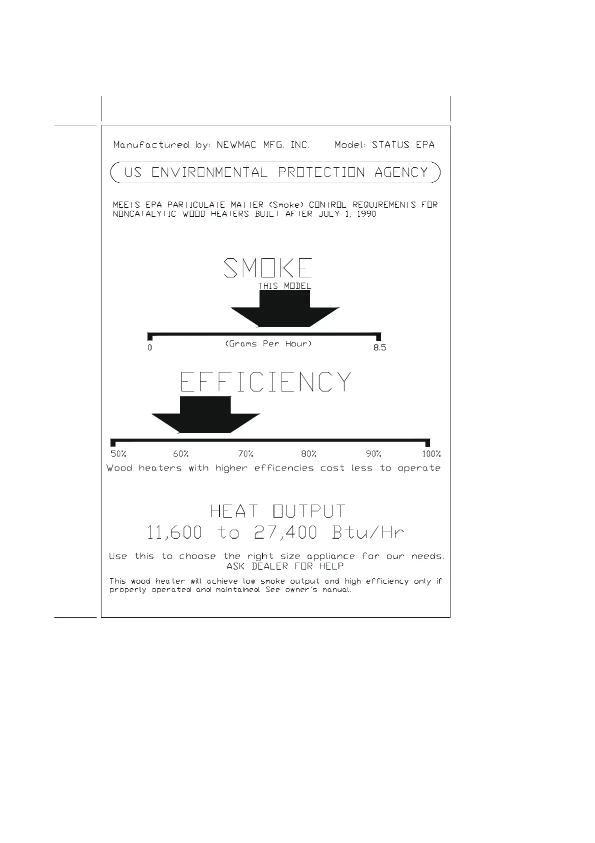 Newmac NS220E - EPA Emissions Data - Status EPA; Status EPA Smoke and Efficiency Ratings