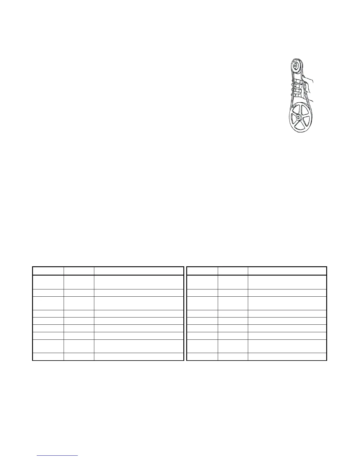 inch without movement of the motor pulley. The belt should be just tight enough to avoid slippage. Align pulleys