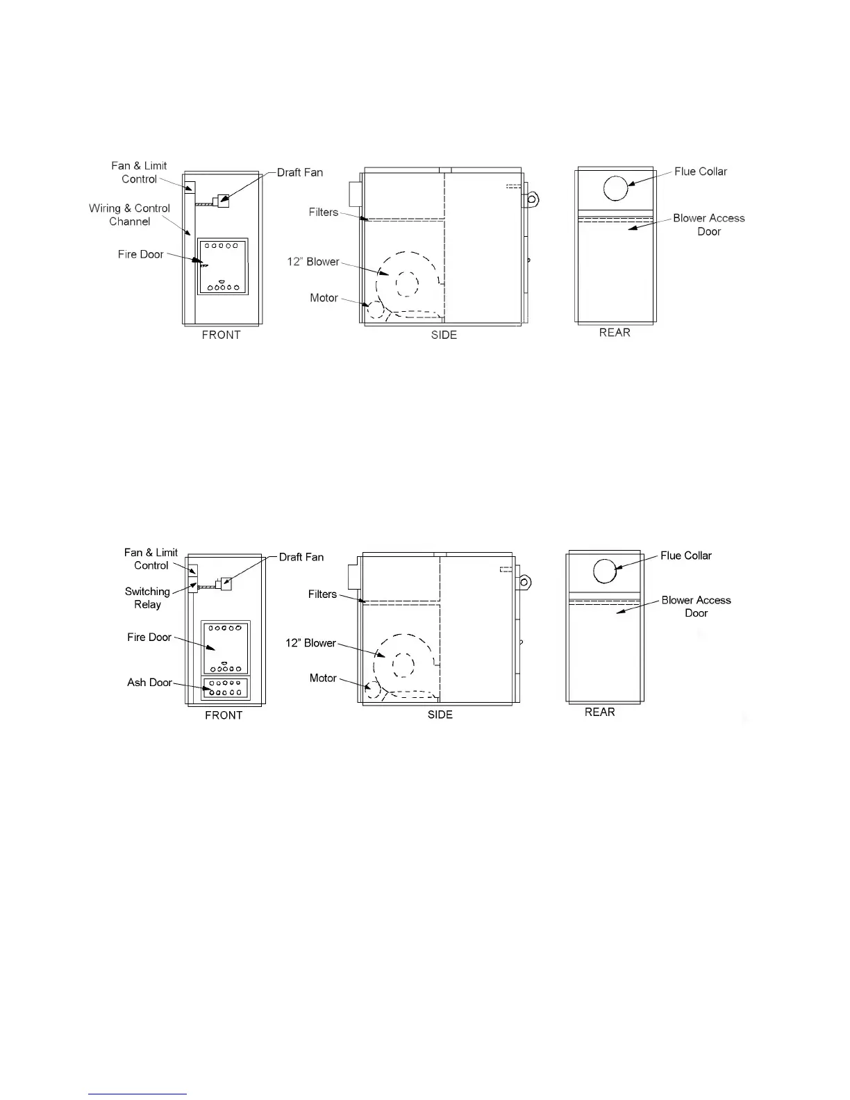 Newmac WB-100E - Diagram #5 - Newmac WB100 Furnace Control Locations; Diagram #6 - Newmac WG100 Furnace Control Locations