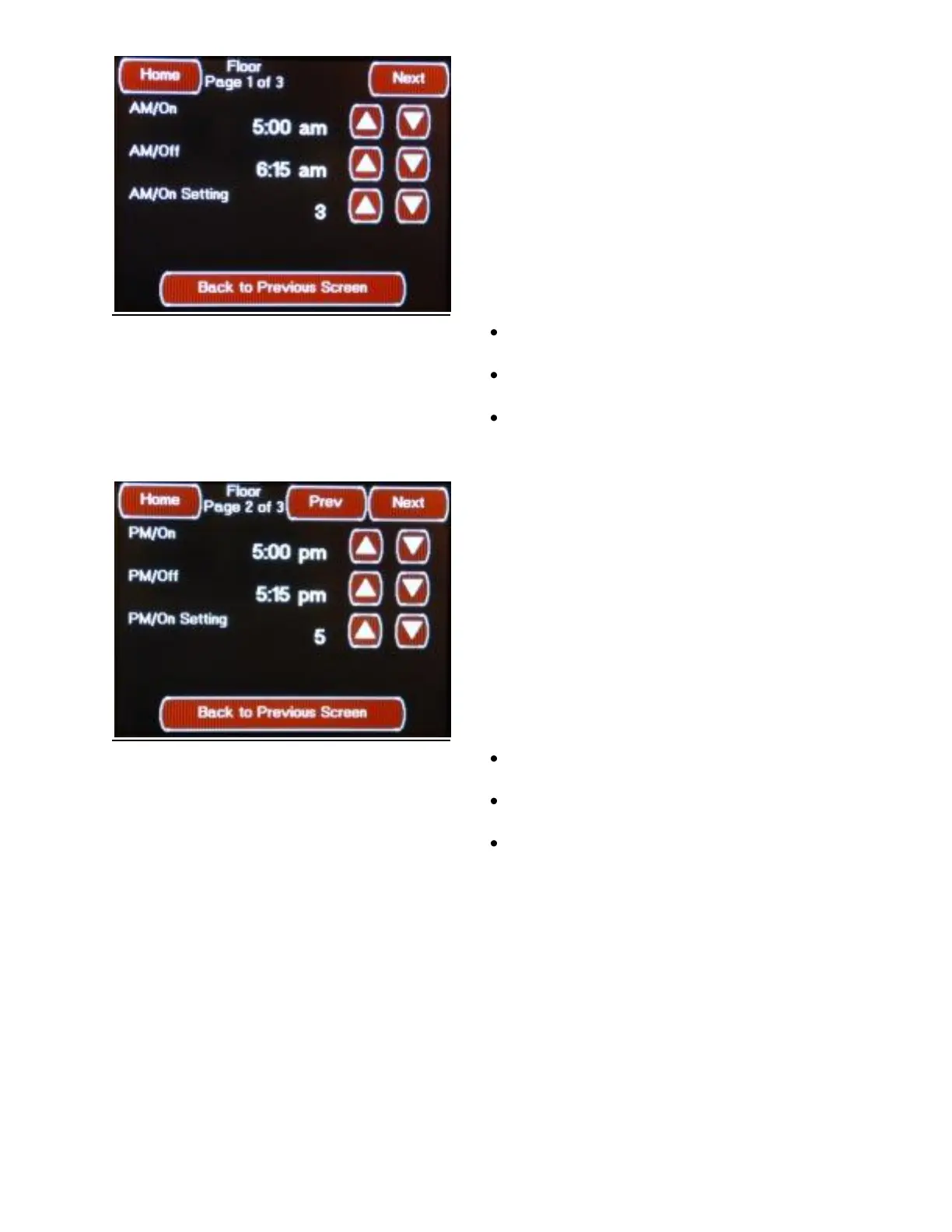 FLOOR HEAT with 4 Time Schedule Screen 2 of 3