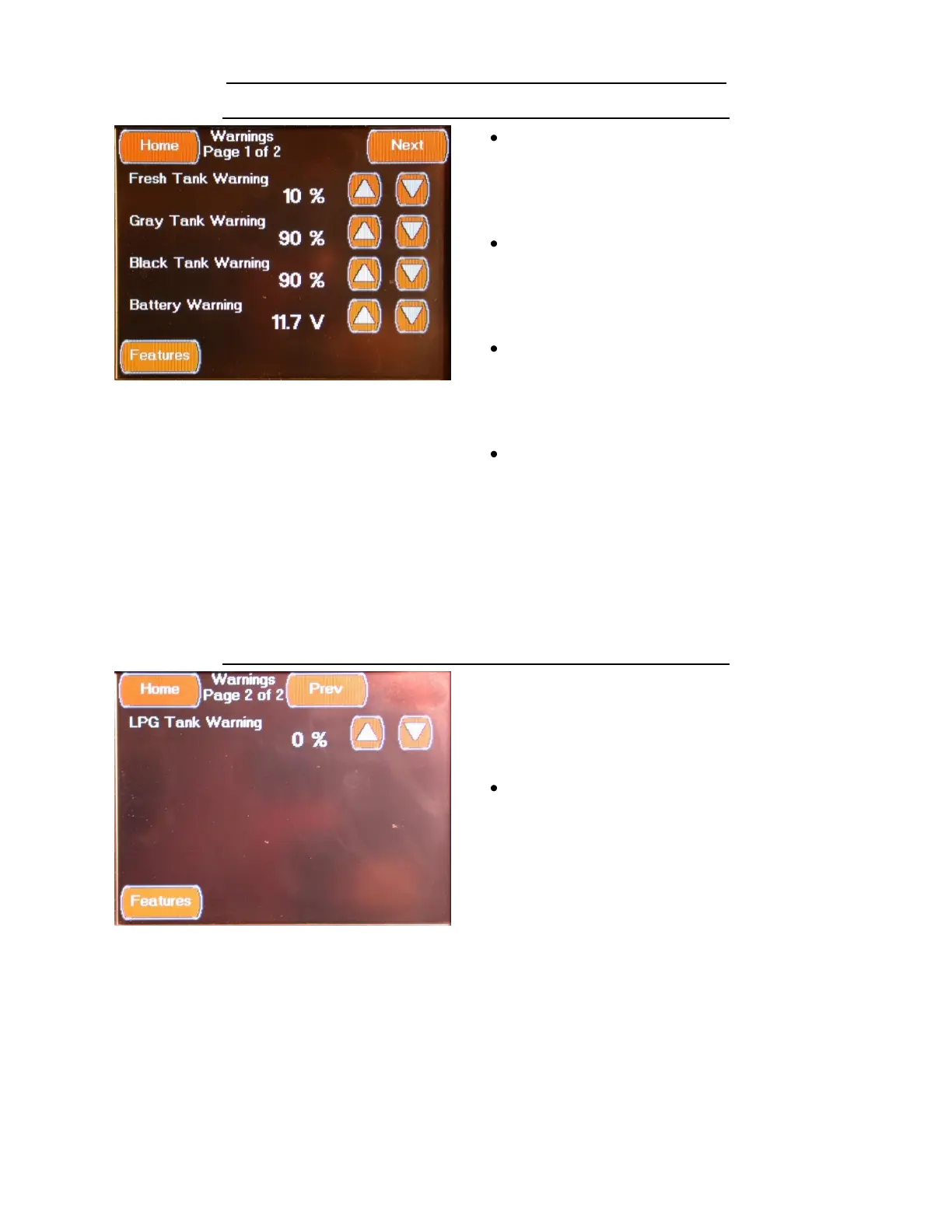 FEATURES WARNINGS CONFIGURATION SCREENS