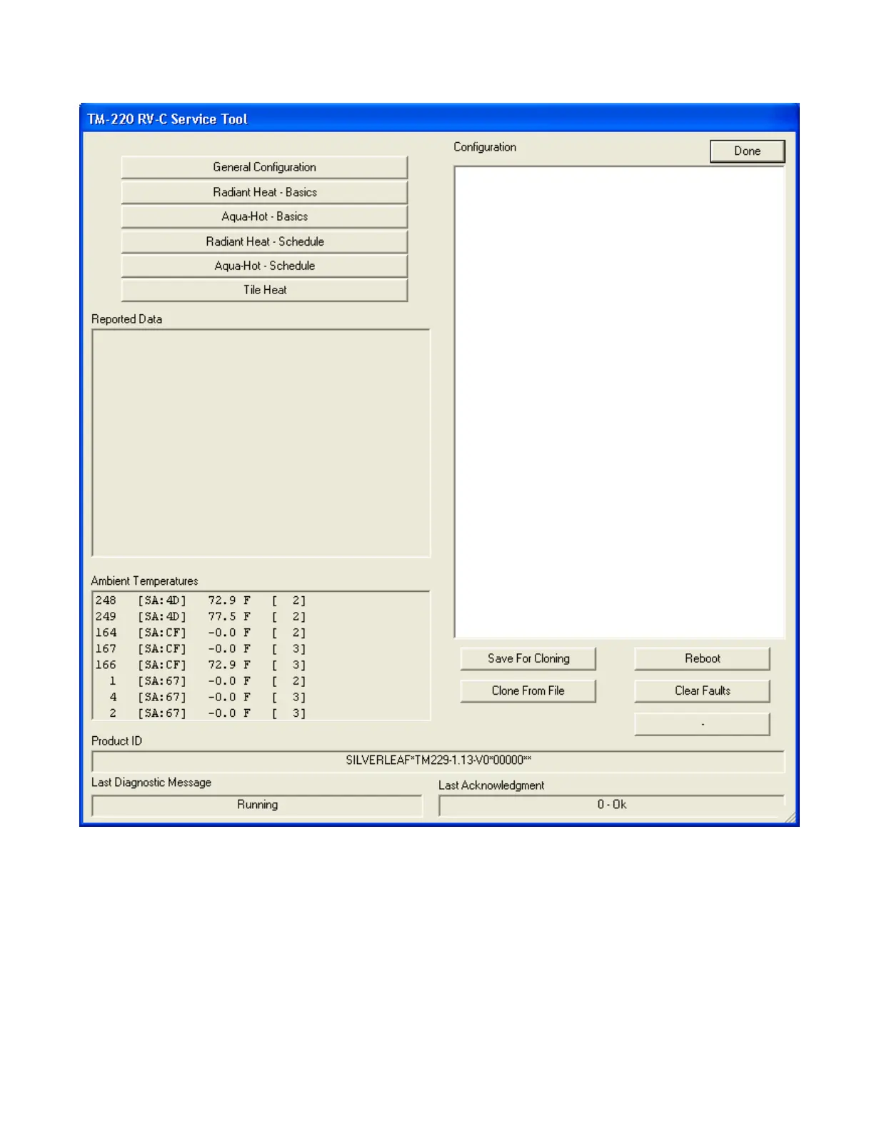 NewMar SilverLeaf RV-C Control System - TM-220 RV-C SERVICE TOOL; TILE HEAT CONFIGURATION