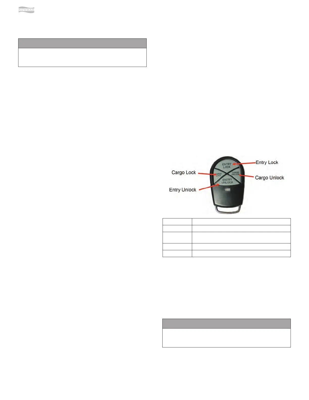 Cargo Unlock Unlocks compartment doors and disarms security system