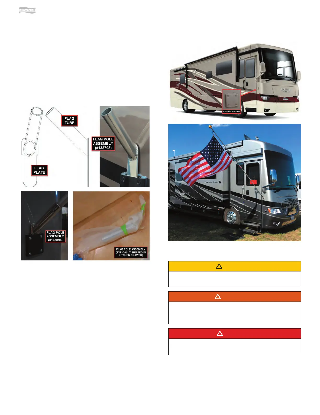 the flagpole (not provided by Newmar). To remove the